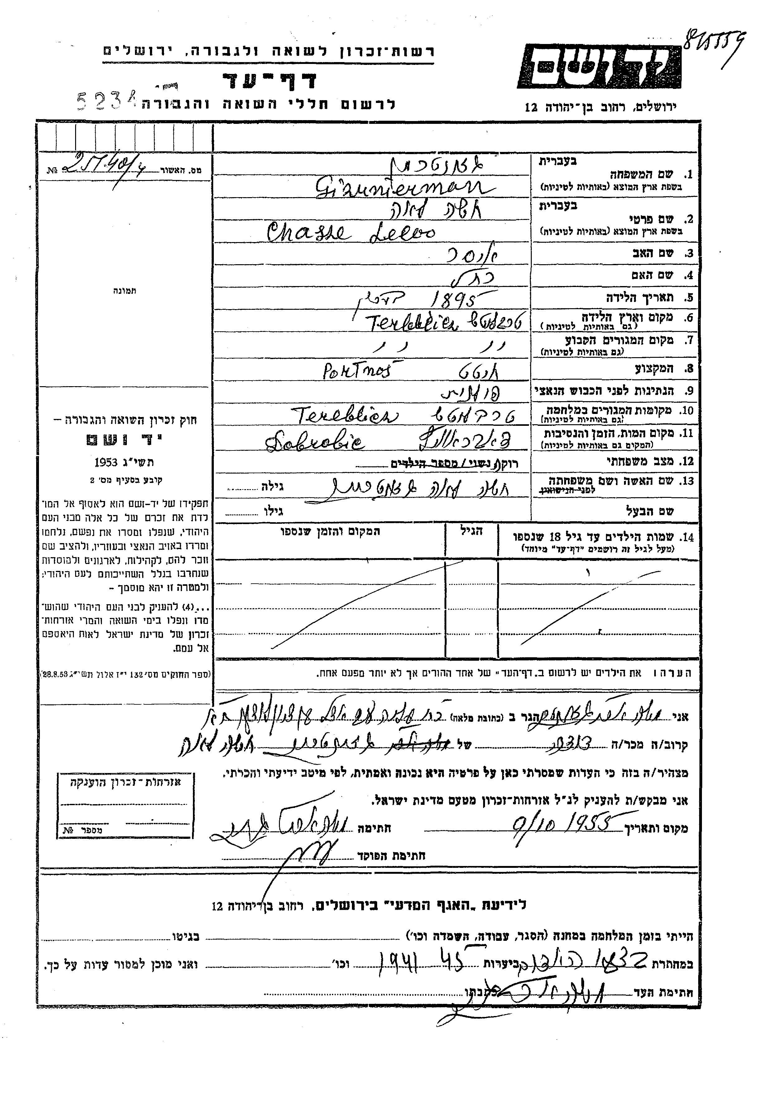 Yad Vashem - Pages of Testimony Names Memorial Collection