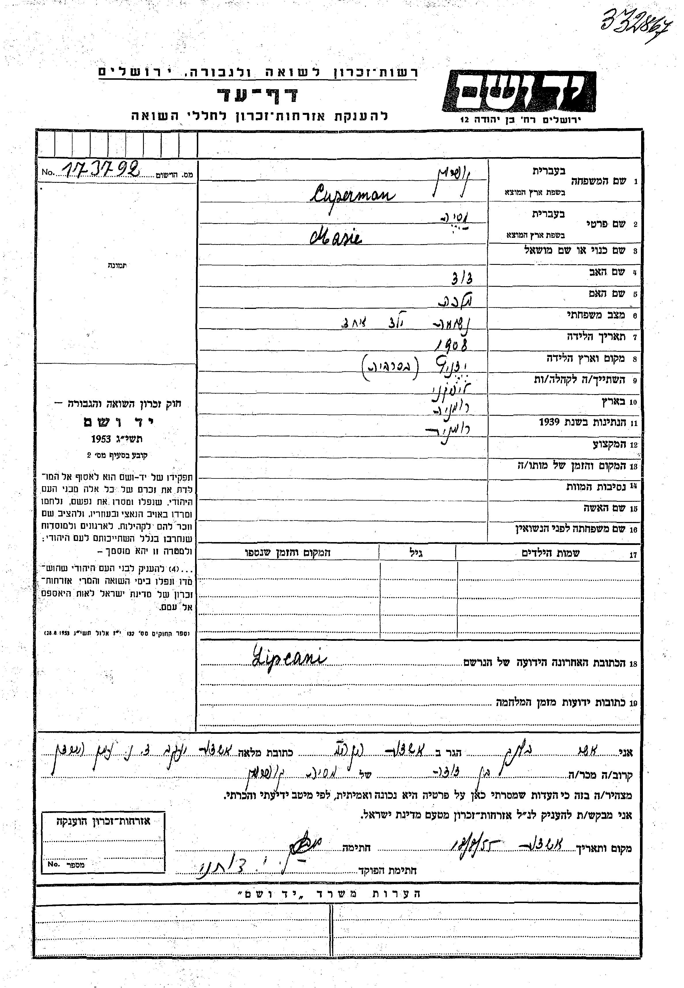Yad Vashem - Pages of Testimony Names Memorial Collection