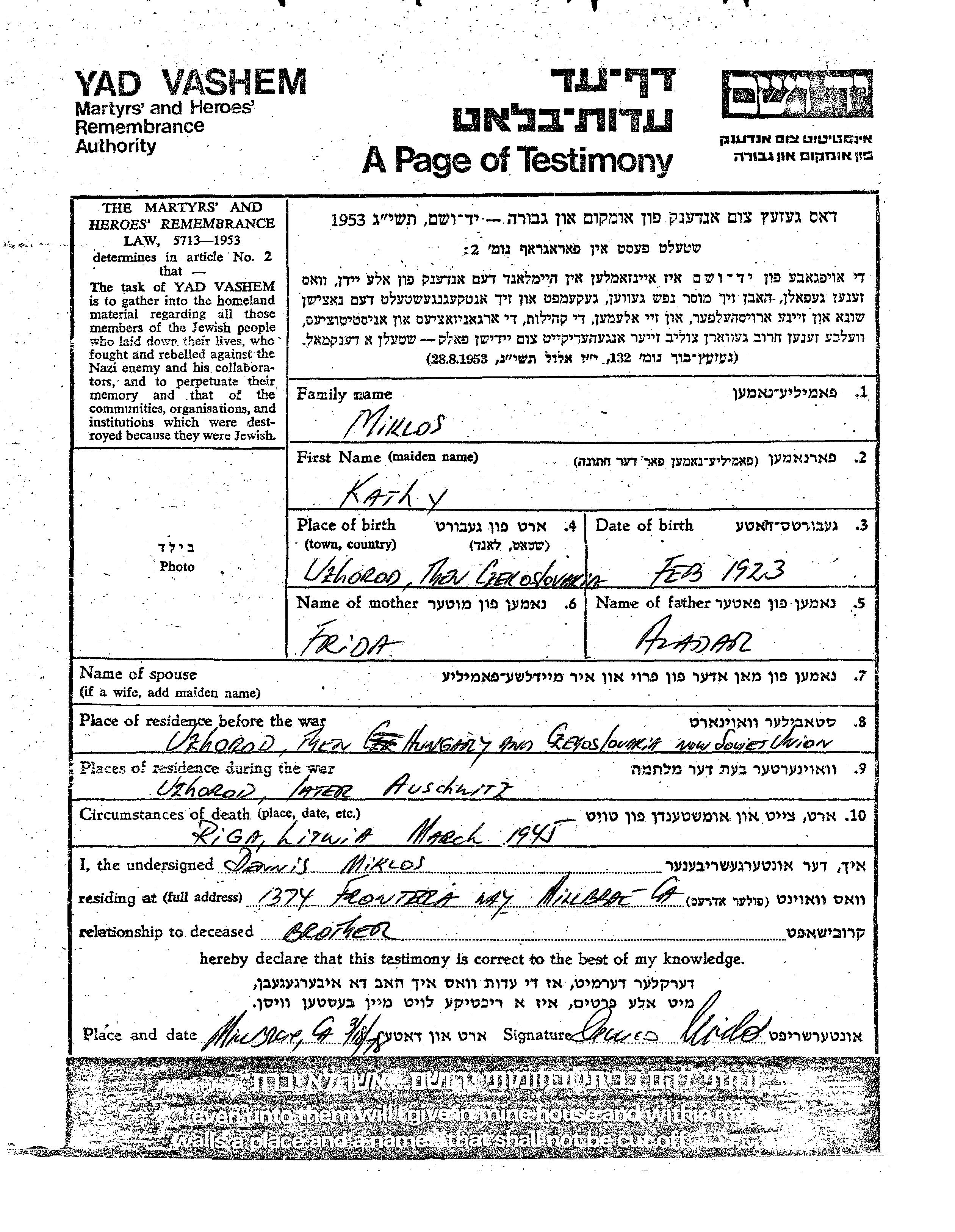 Recherche par lieu de résidence permanente avant la Shoah, ville, village, département, région ou pays.