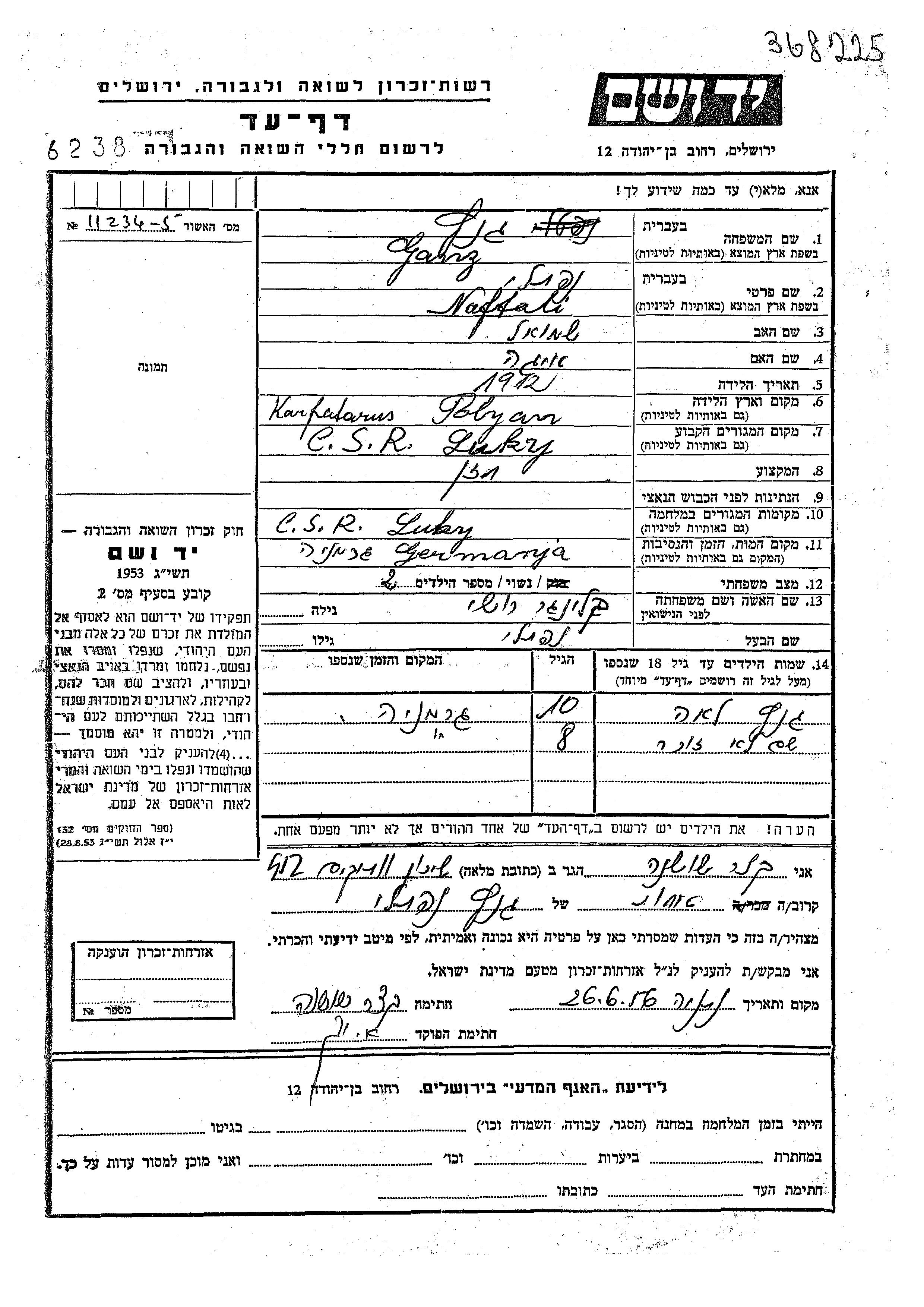 Yad Vashem - Pages of Testimony Names Memorial Collection