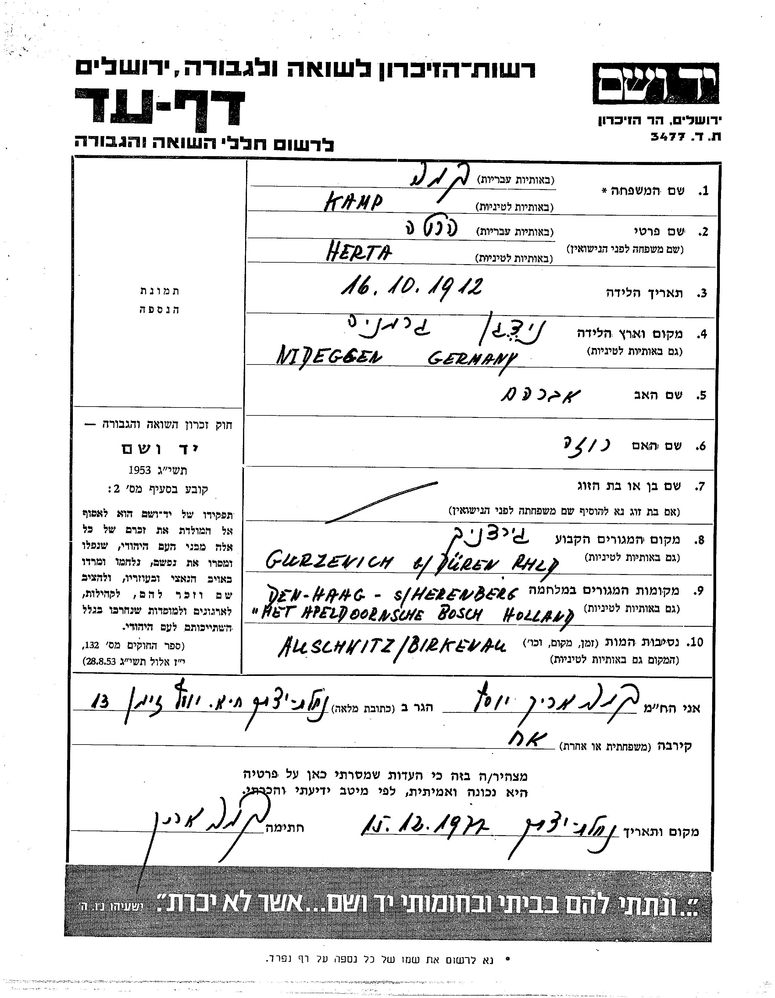 Yad Vashem - Pages of Testimony Names Memorial Collection