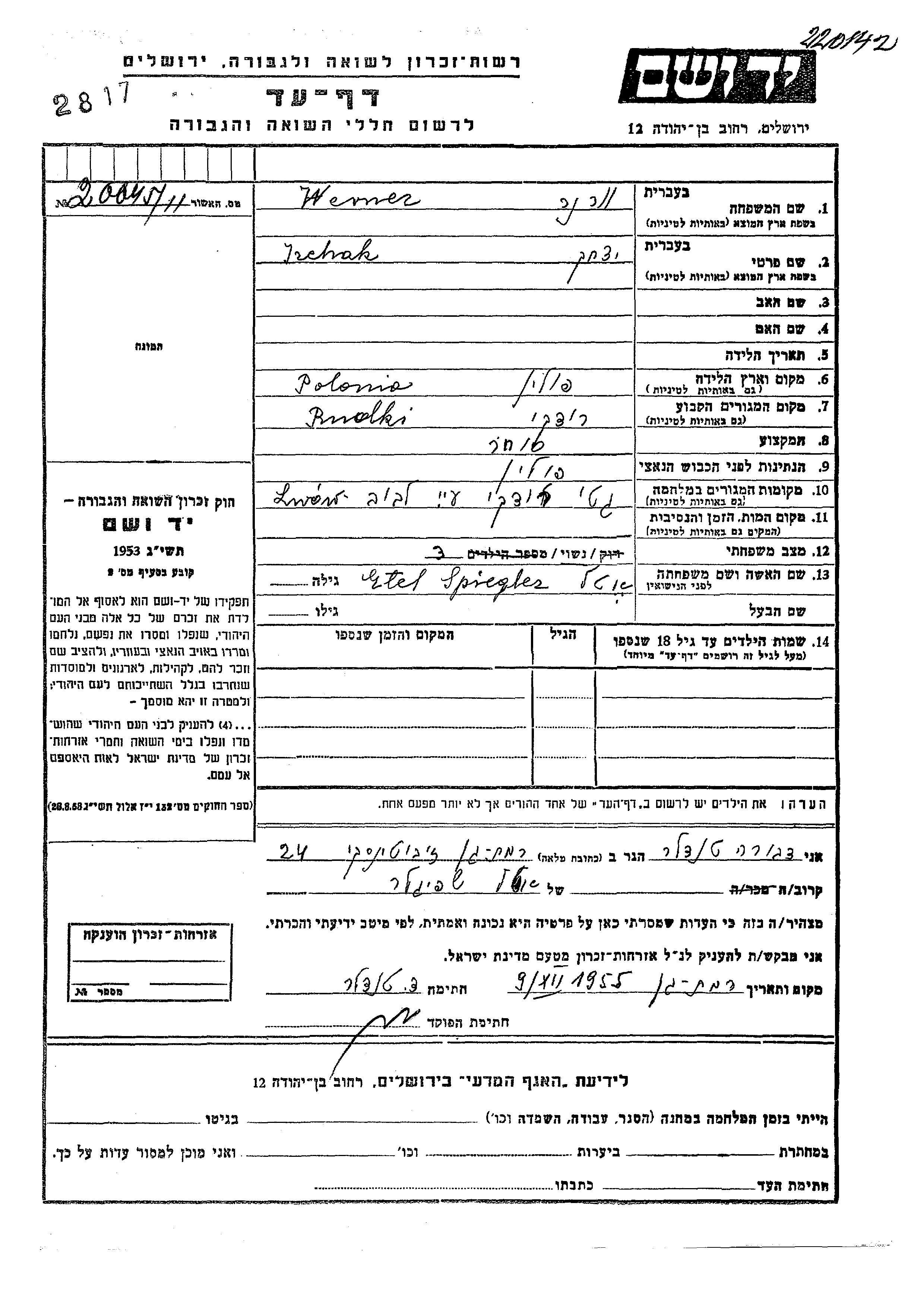 Werner Izchak Rudki, Pologne Feuille de témoignage