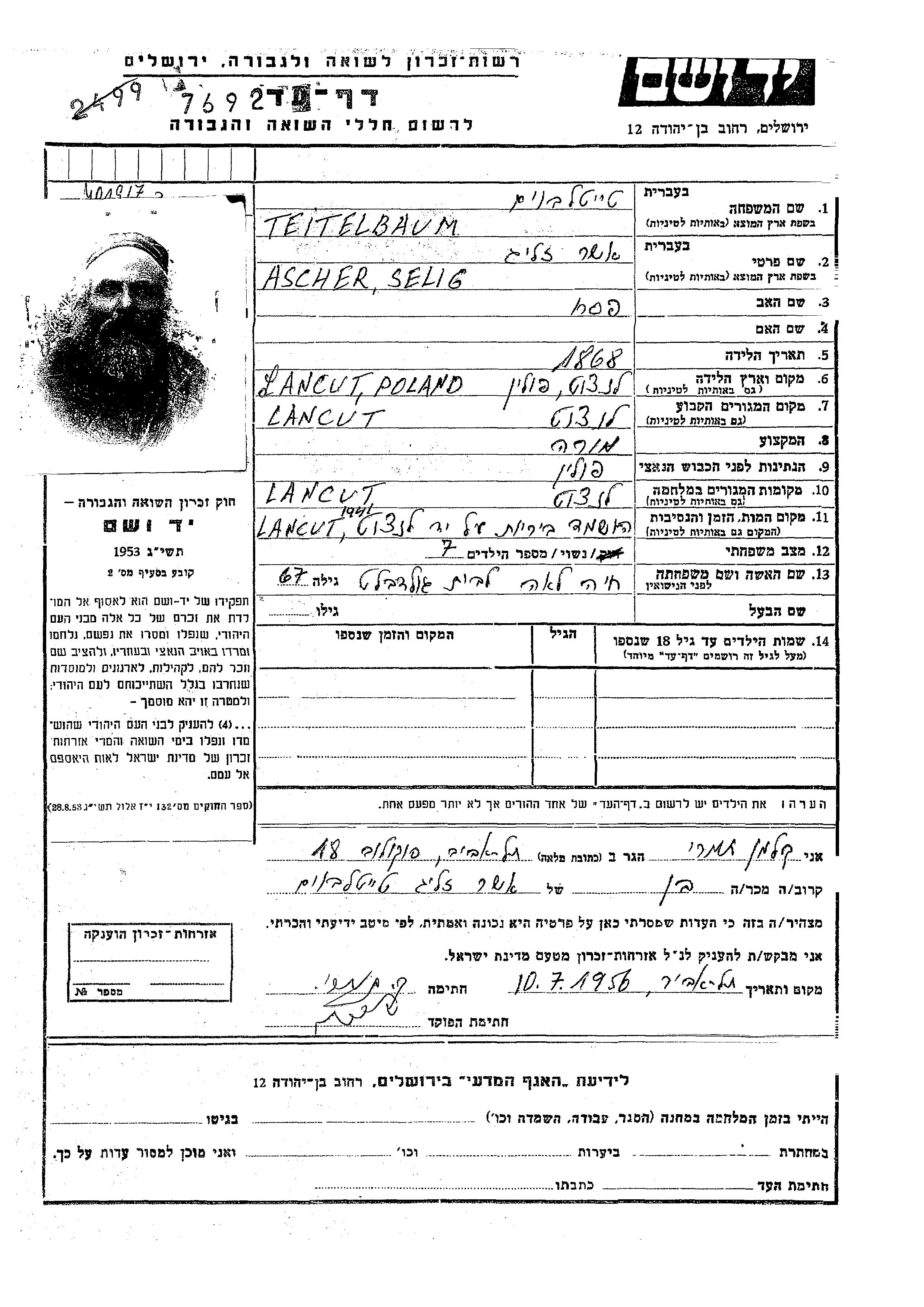 Yad Vashem - Pages of Testimony Names Memorial Collection