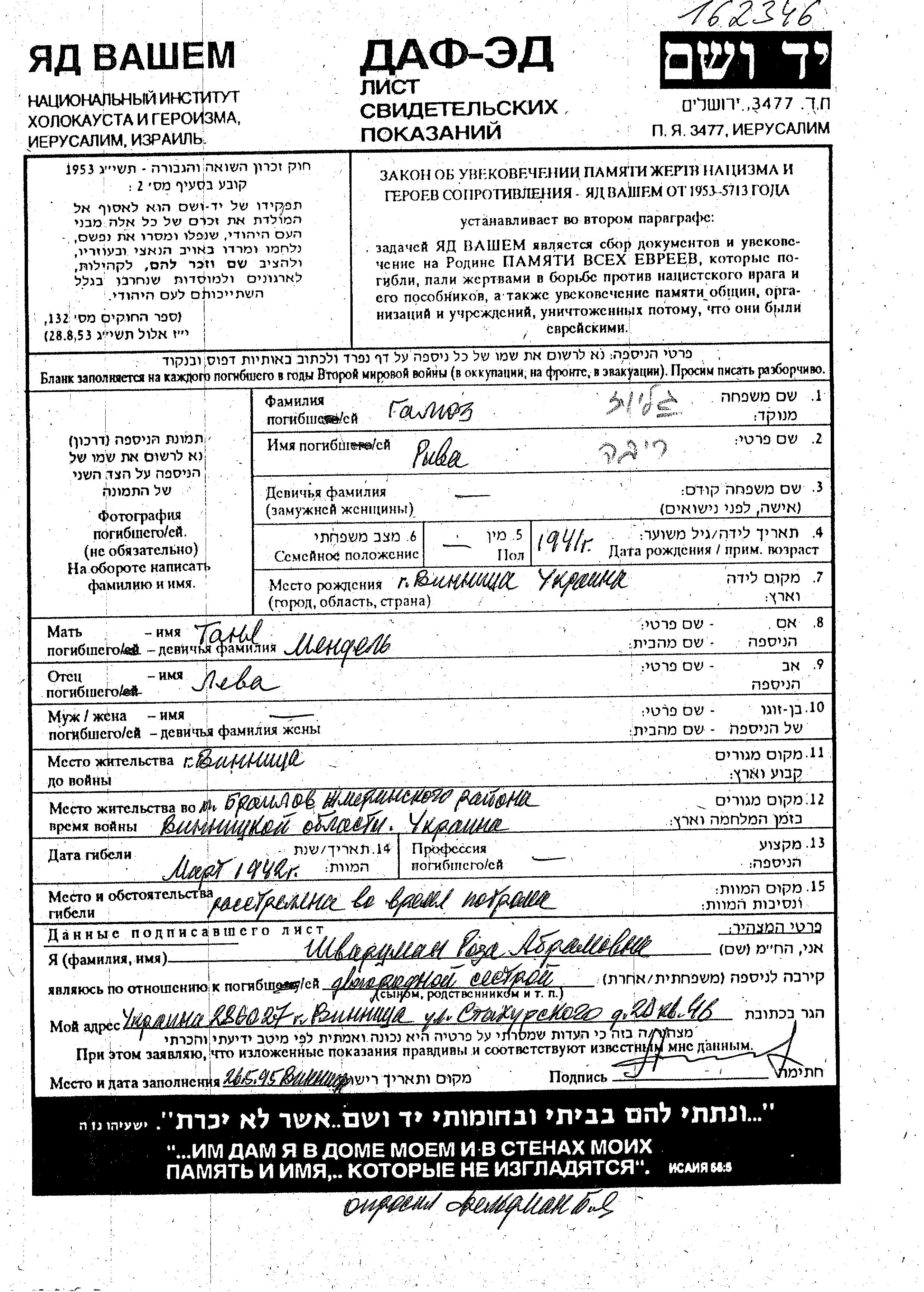 Au cours de la Shoah, les Juifs ont été assassinés de diverses façons : gazage, exécution par balle, immolation, noyade, enterrés vivants, épuisement par les travaux forcés, affamement, maladies et épidémies, privation de soins médicaux et de mesures de salubrité, etc. Certains Juifs ont mis fin à leur vie pour échapper à l'arrestation, aux persécutions ou aux souffrances permanentes et sans aucun espoir. Des dizaines de milliers de soldats juifs servant dans l’armée soviétique et capturés comme prisonniers de guerre furent sélectionnés comme juifs et assassinés. Beaucoup furent enregistrés comme «disparus au combat».
