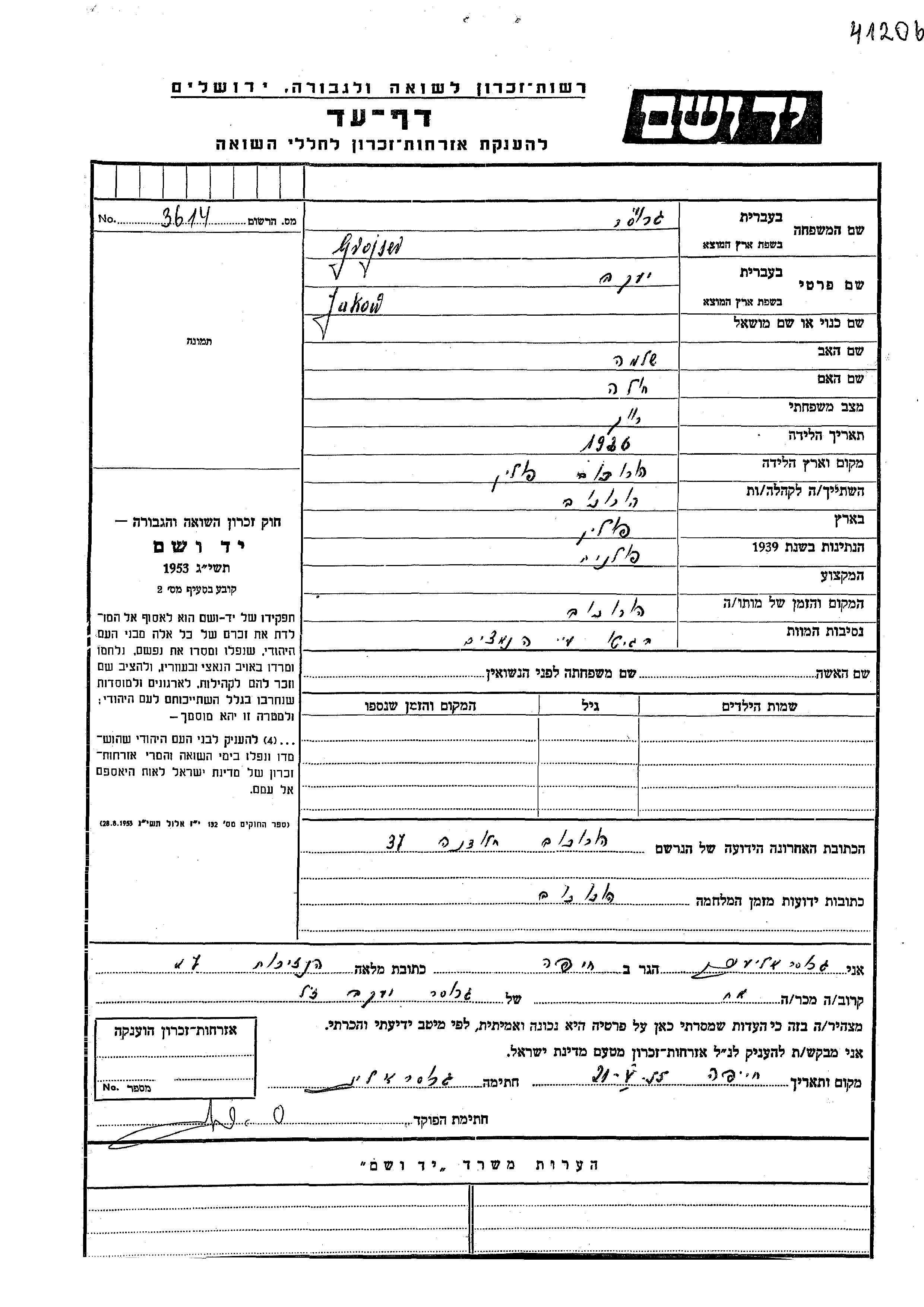 Yad Vashem - Pages of Testimony Names Memorial Collection