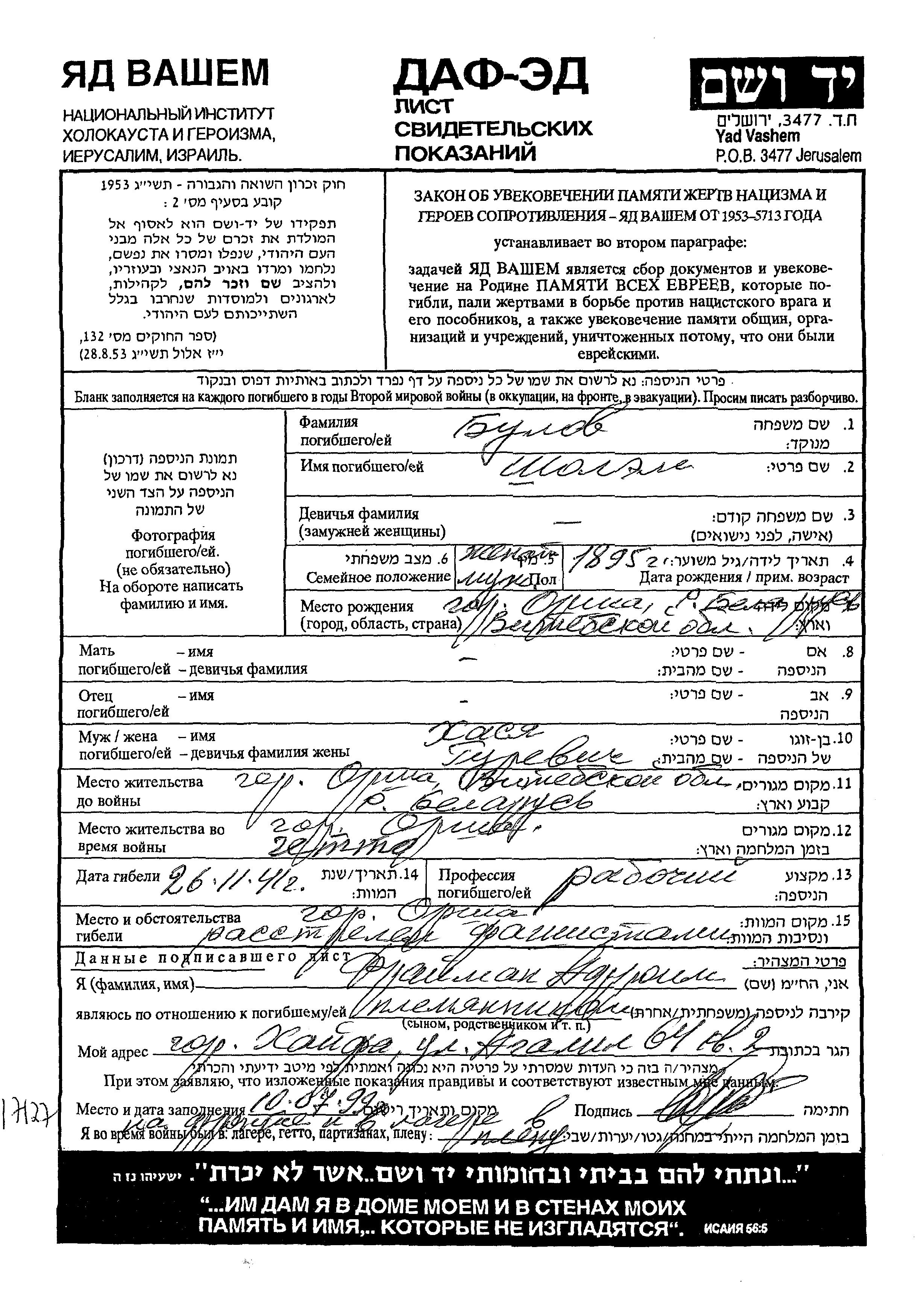 Yad Vashem - Pages of Testimony Names Memorial Collection