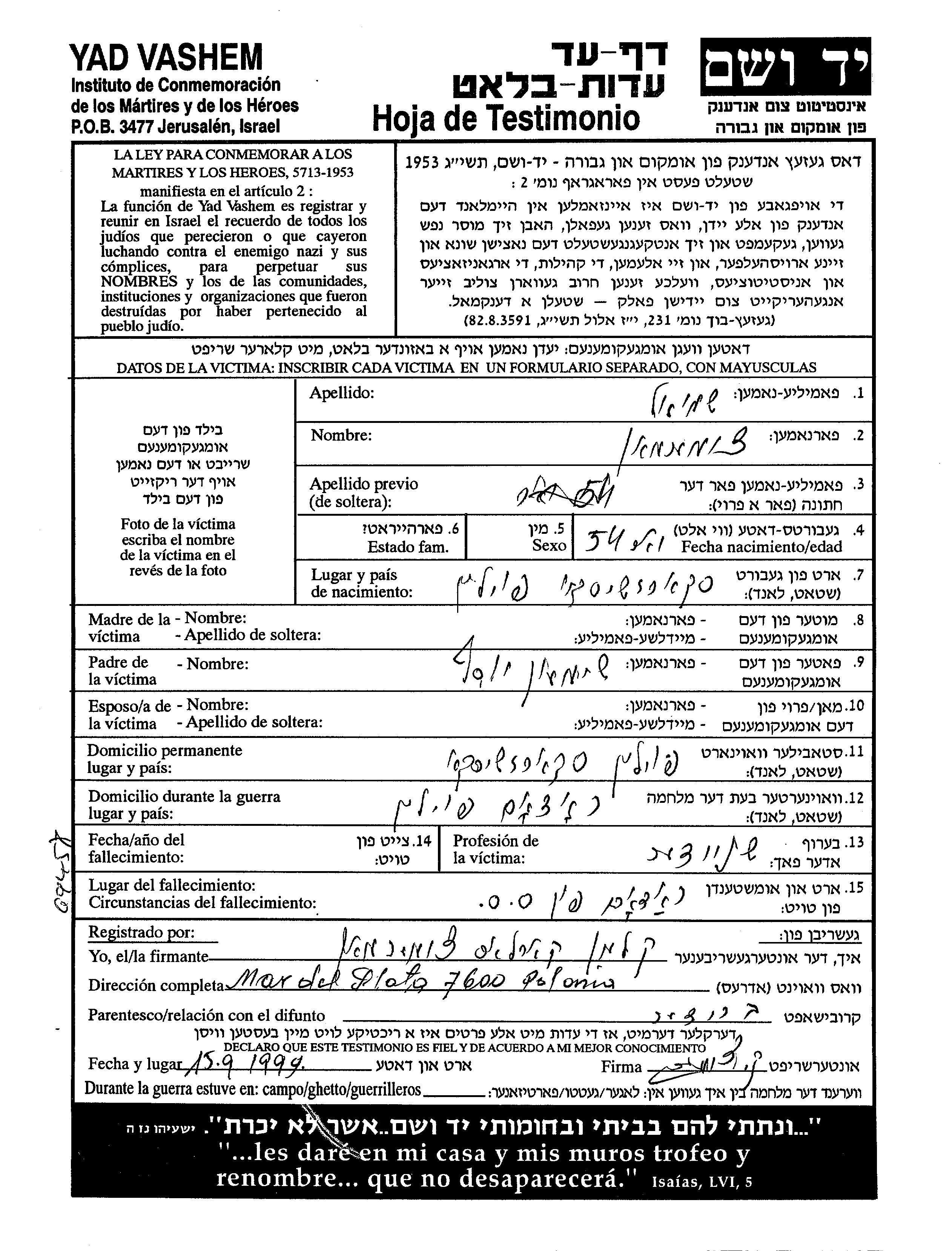 Yad Vashem - Pages of Testimony Names Memorial Collection