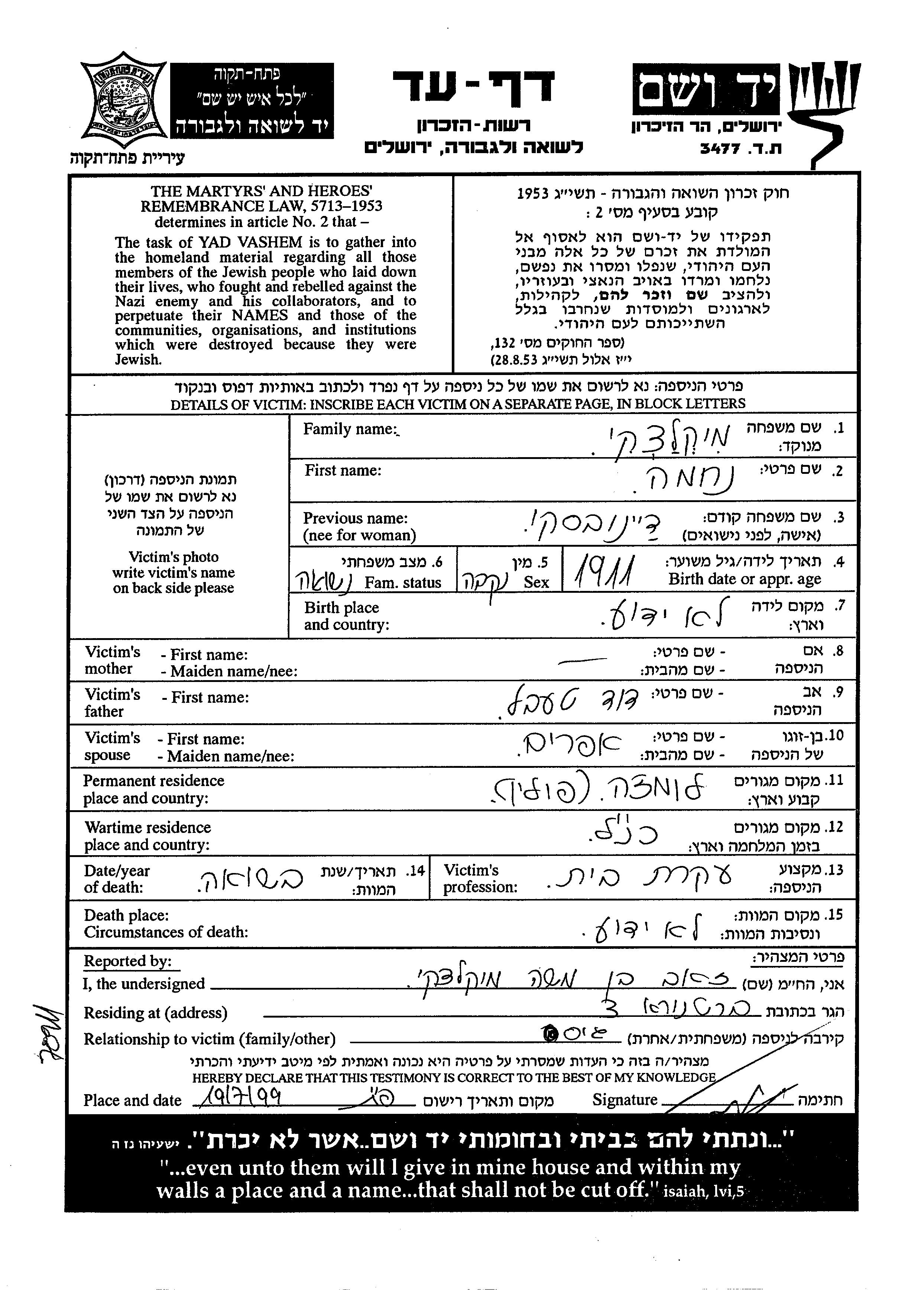 Yad Vashem - Pages of Testimony Names Memorial Collection
