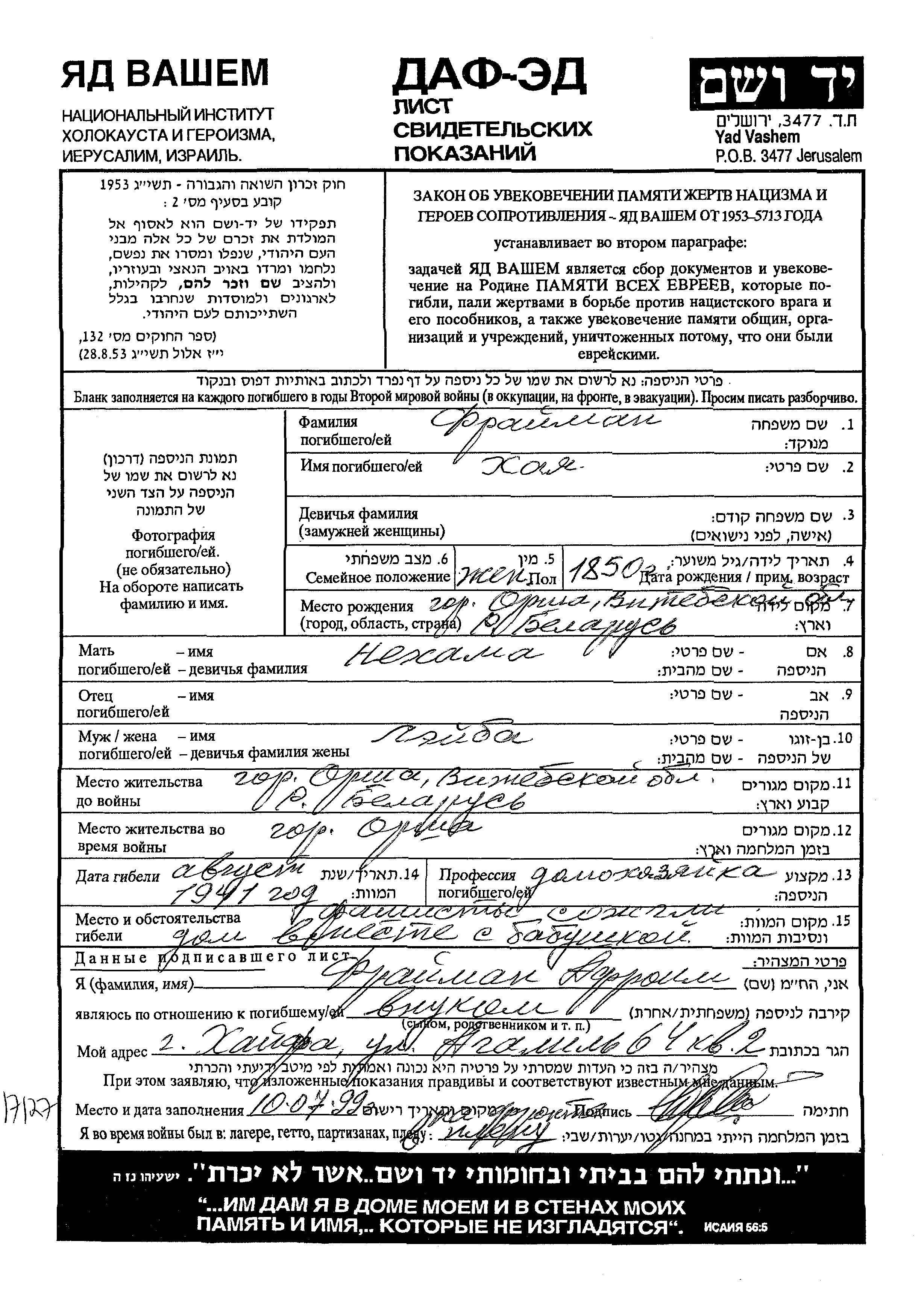 Yad Vashem - Pages of Testimony Names Memorial Collection