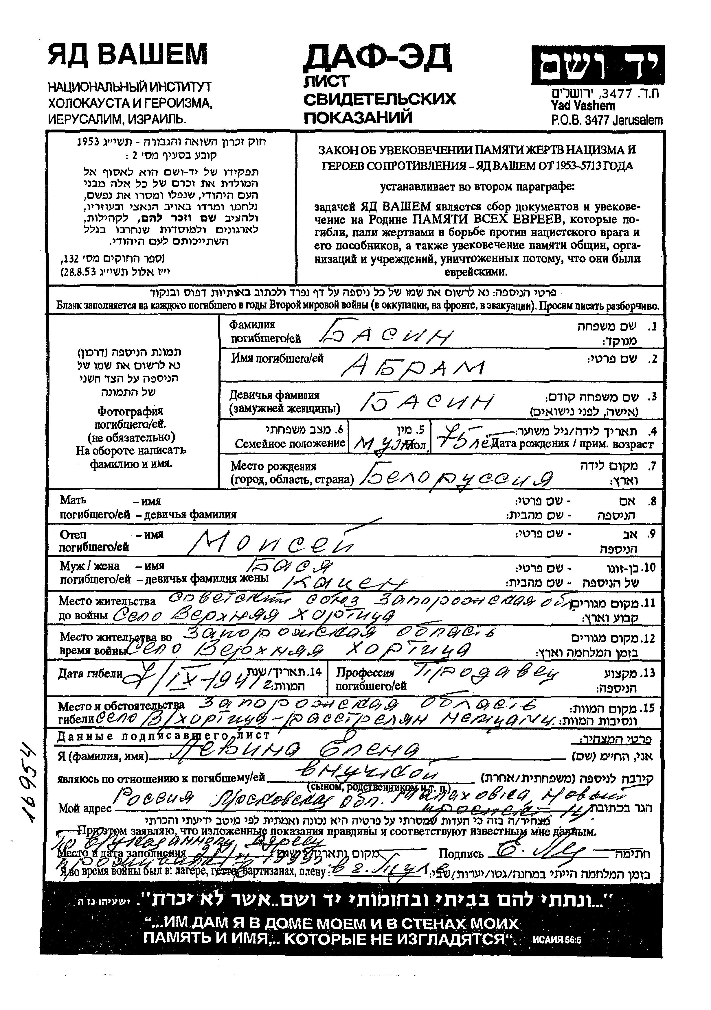Yad Vashem - Pages of Testimony Names Memorial Collection