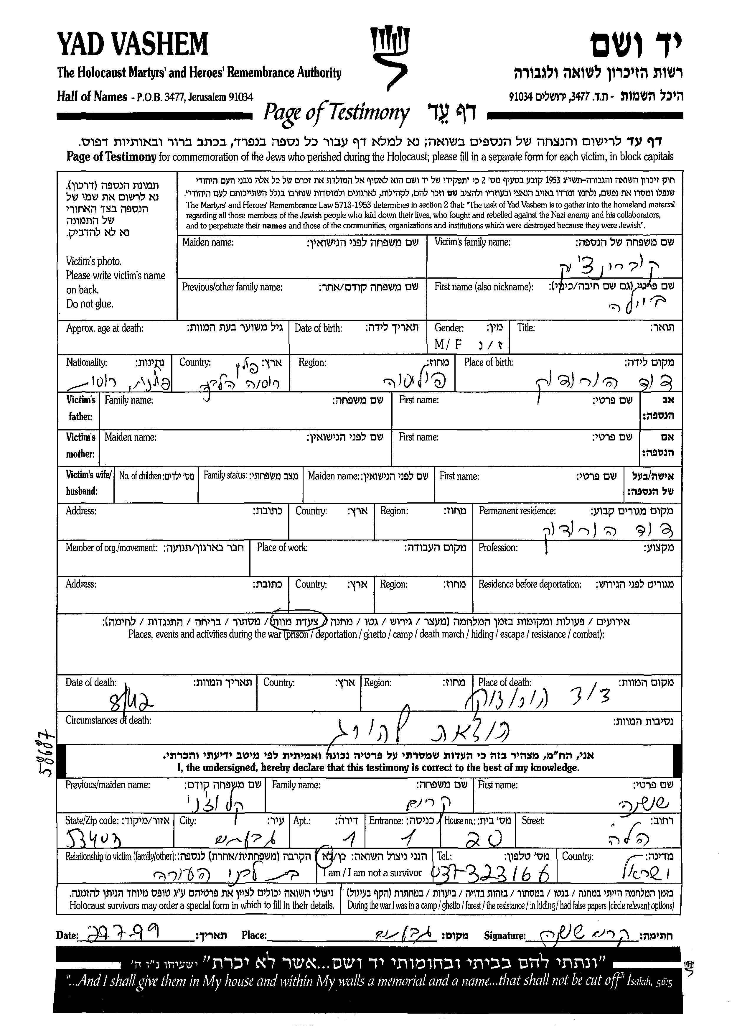 Yad Vashem - Pages of Testimony Names Memorial Collection