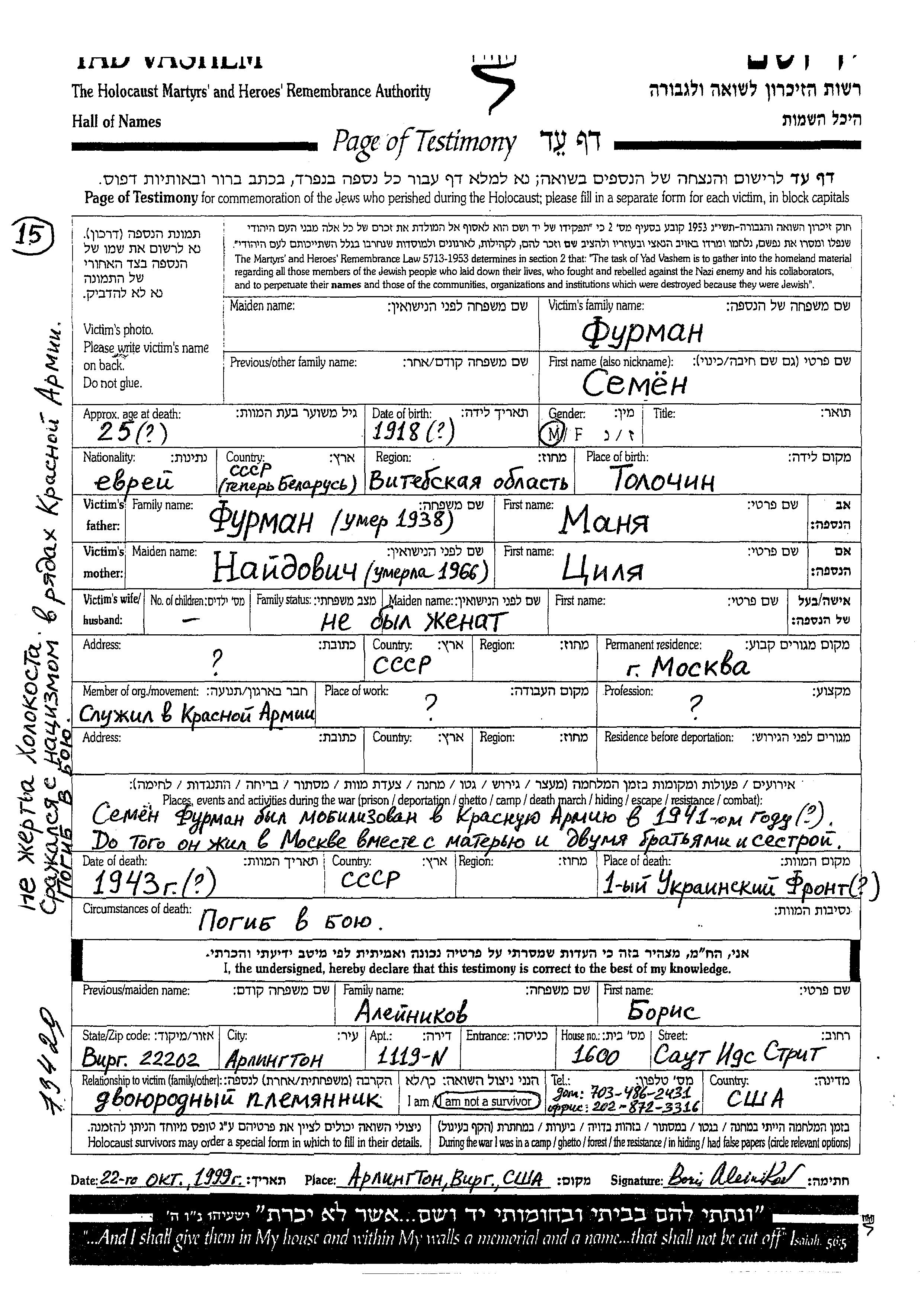 Recherche par date de la mort pendant la période de la Shoah: 1933-1945. Sélectionnez 'Exact'; dans la liste pour rechercher l'année exacte, ou sélectionner '+/- 2 ans'; ou '+/- 5 ans