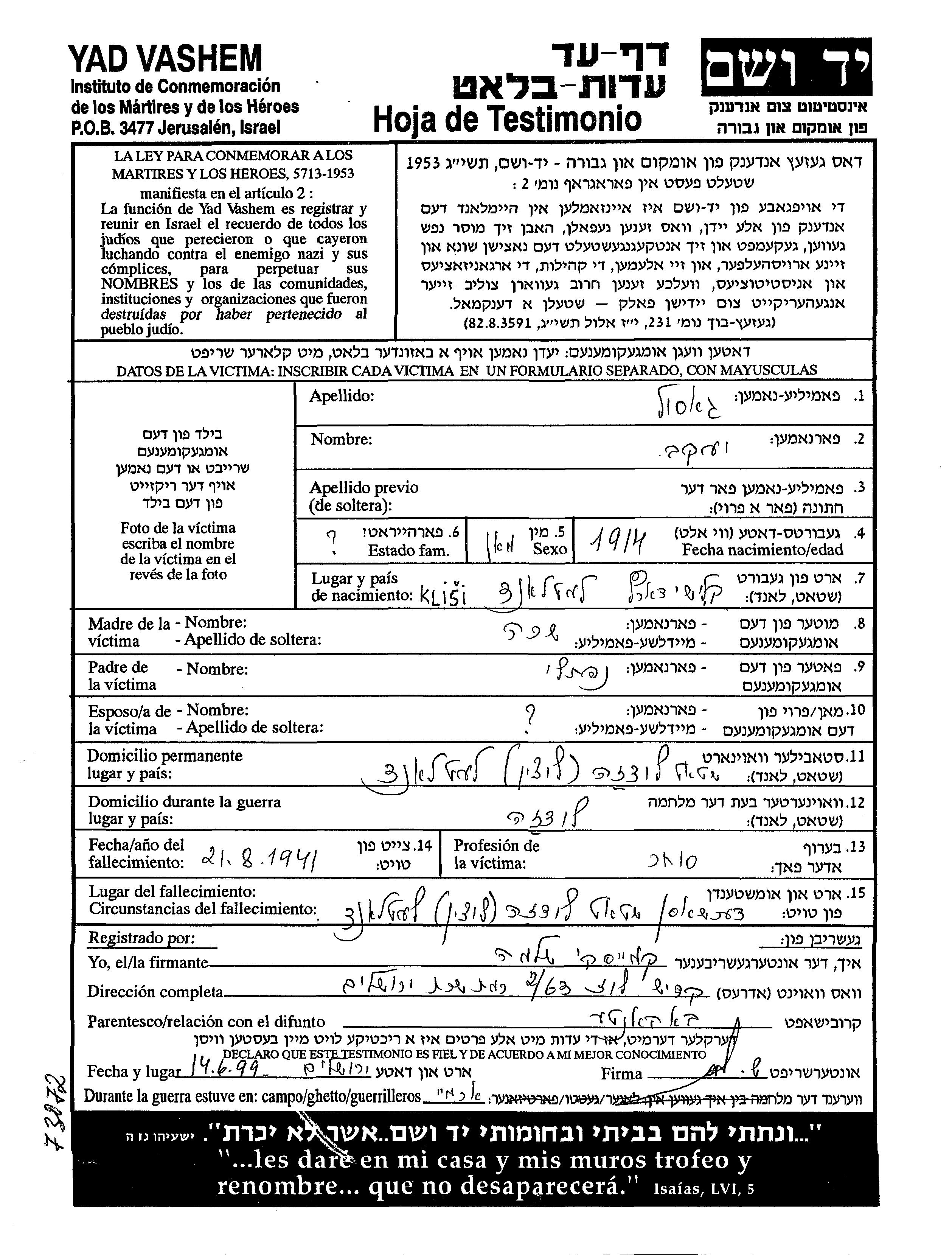 Yad Vashem - Pages of Testimony Names Memorial Collection