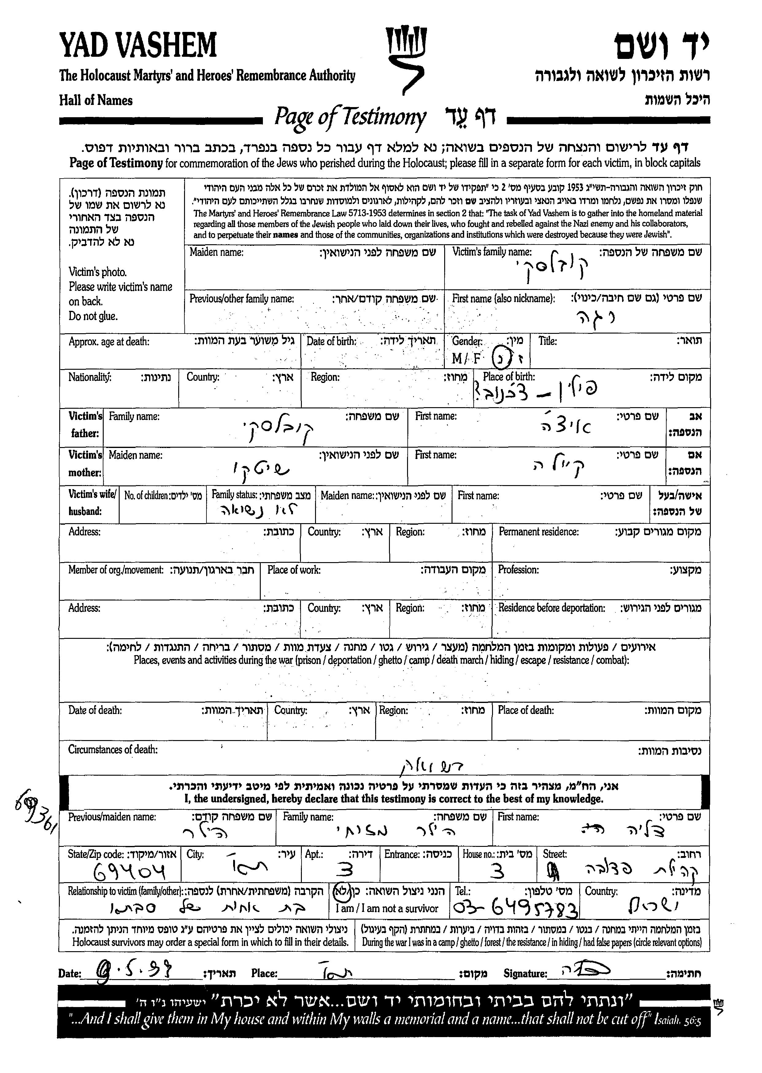 Yad Vashem - Pages of Testimony Names Memorial Collection
