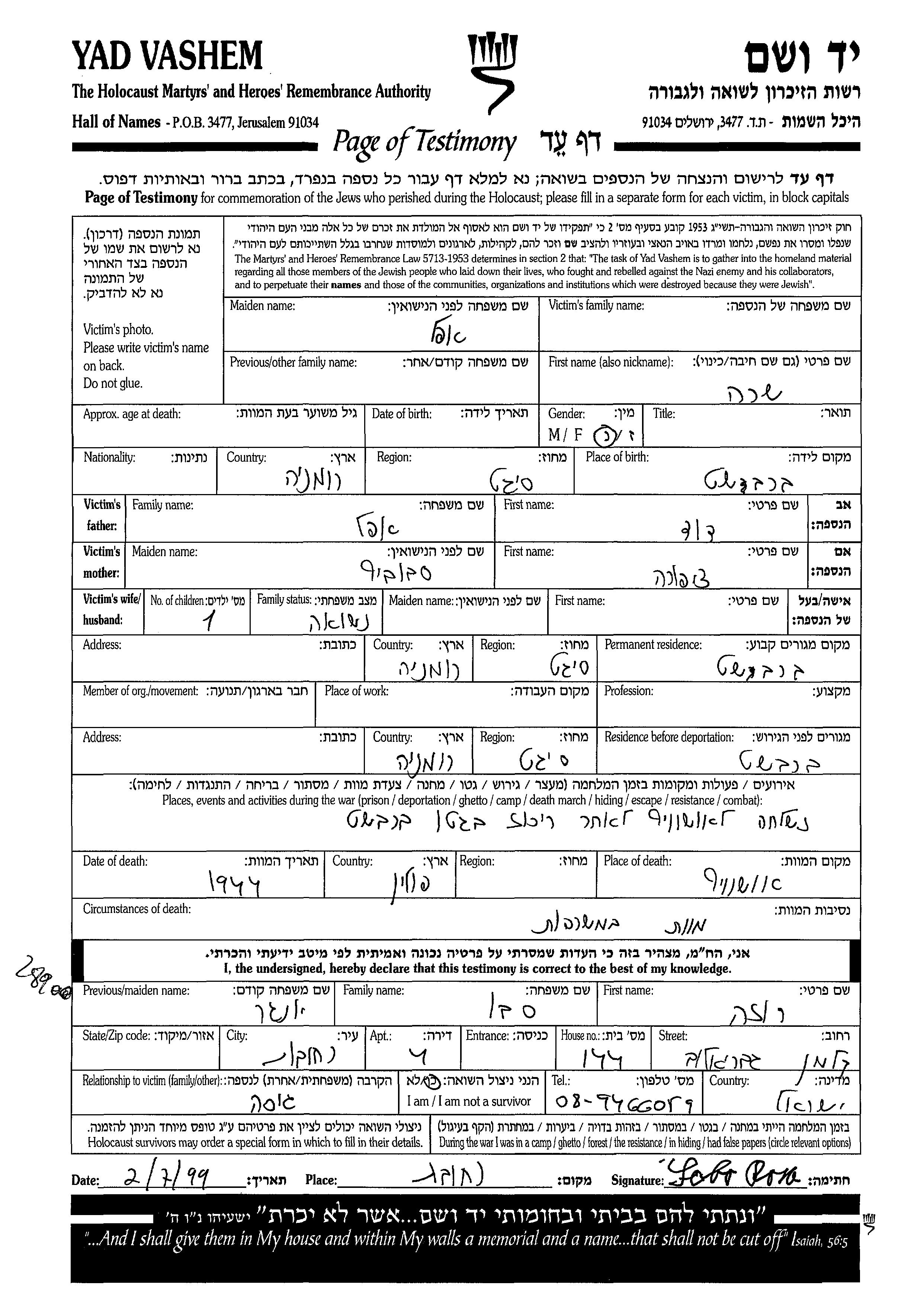 Yad Vashem - Pages of Testimony Names Memorial Collection