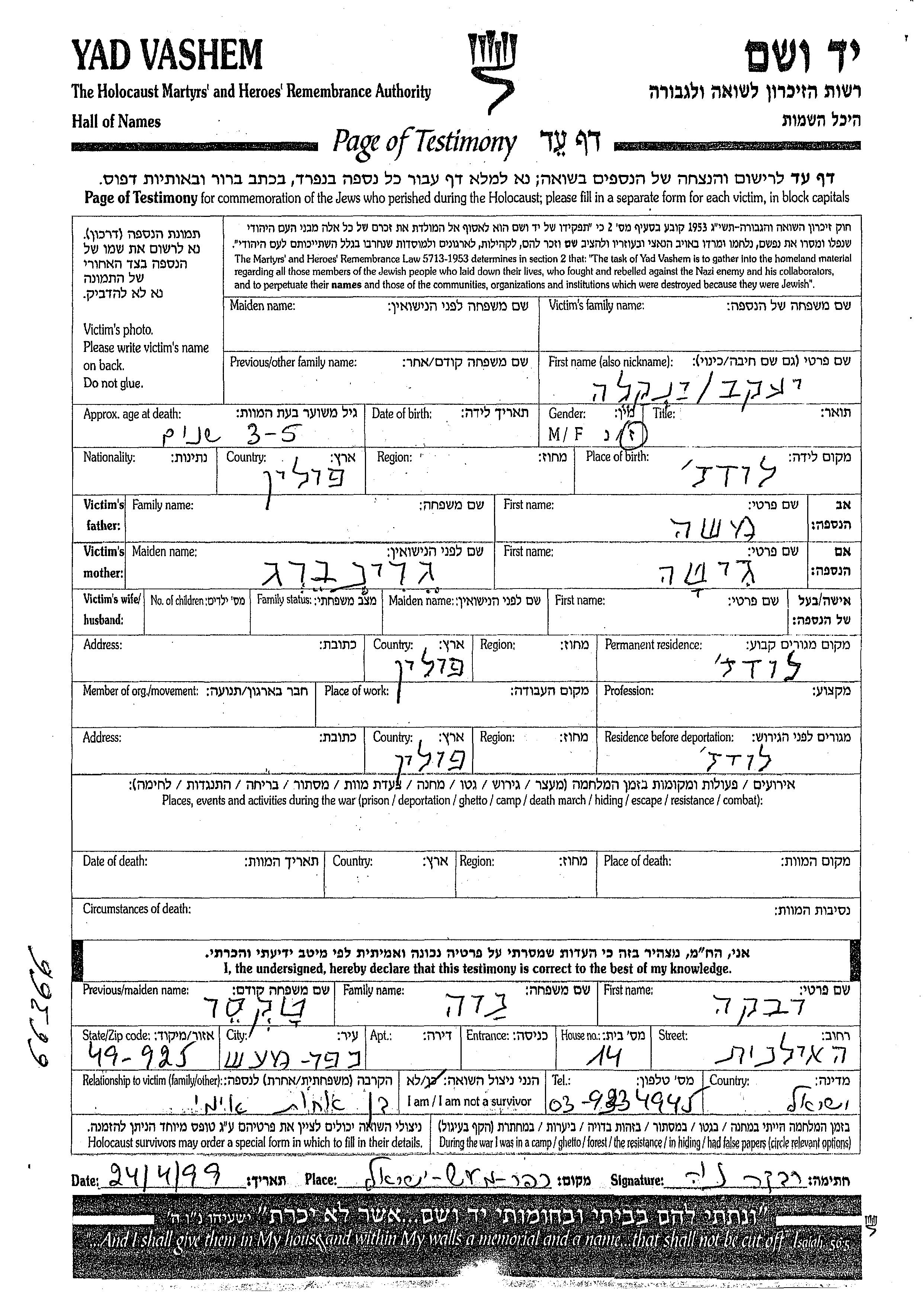 Yad Vashem - Pages of Testimony Names Memorial Collection