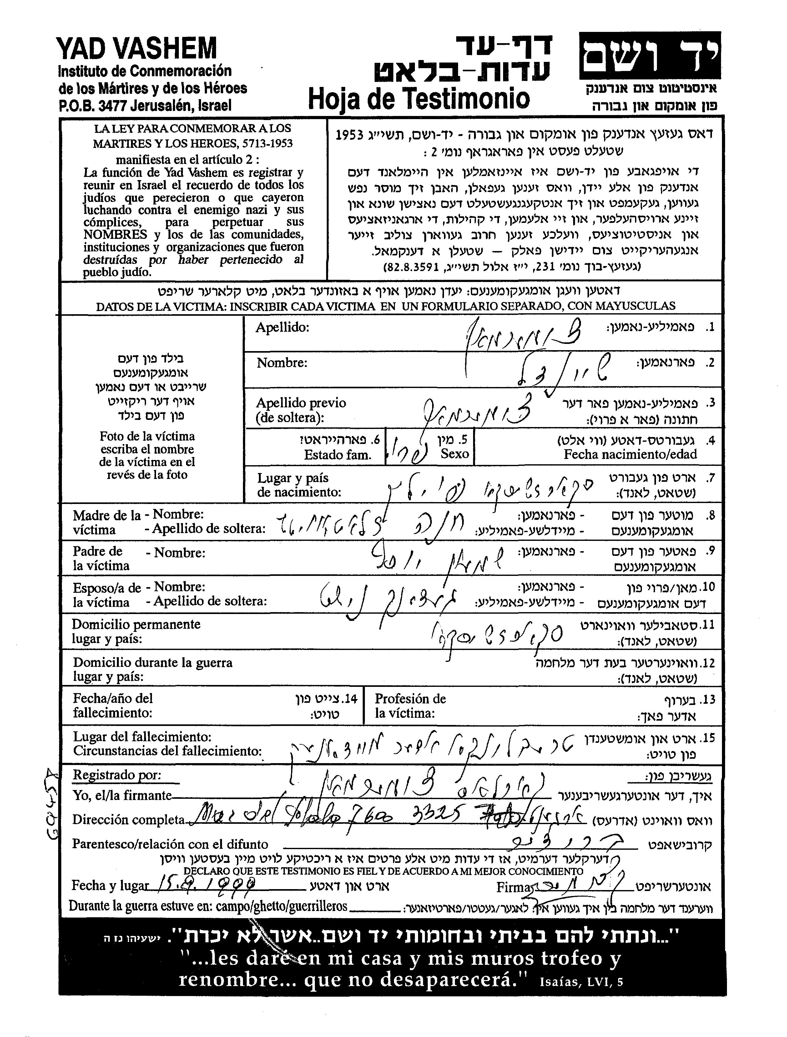 Yad Vashem - Pages of Testimony Names Memorial Collection