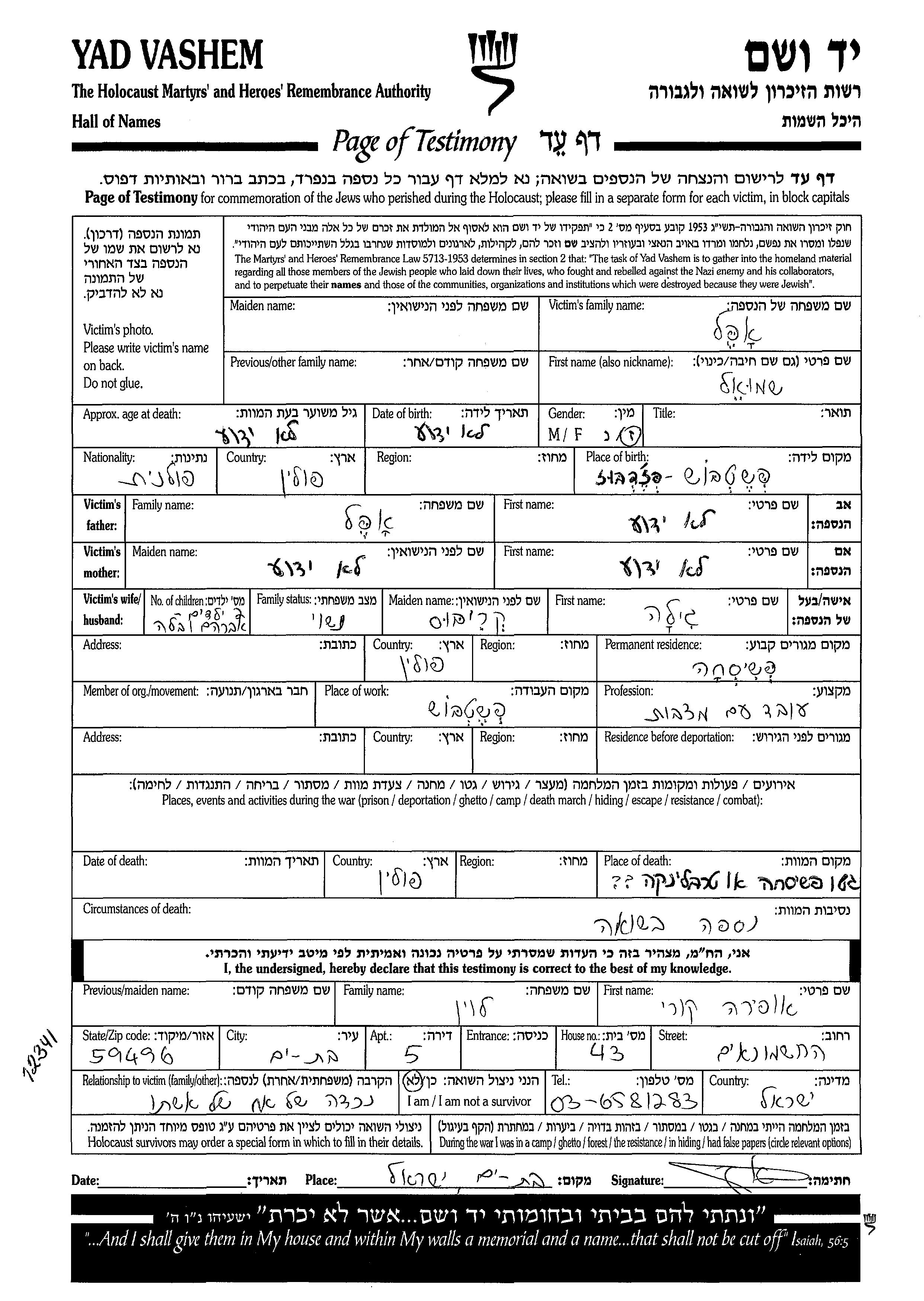 Yad Vashem - Pages of Testimony Names Memorial Collection