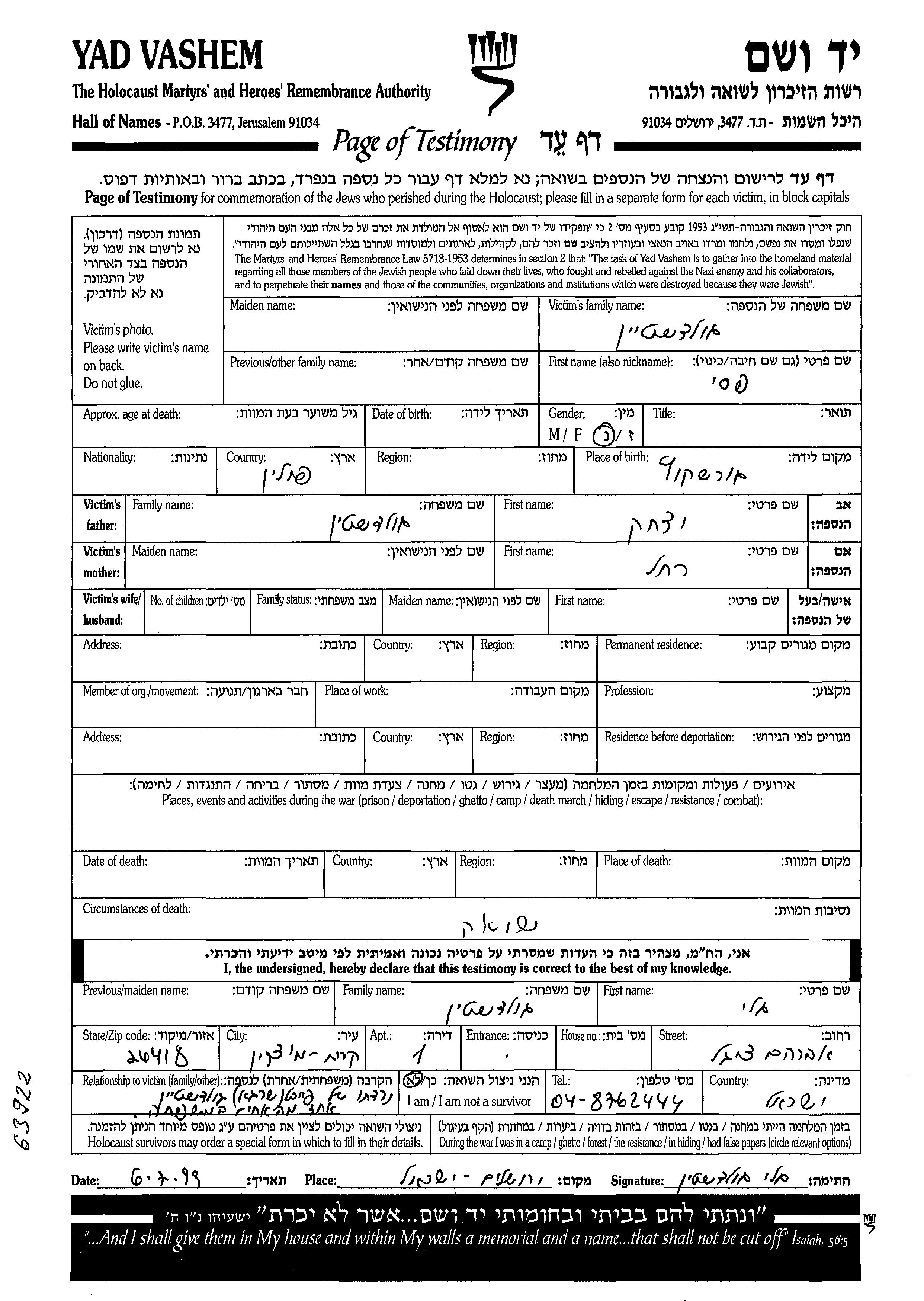 Yad Vashem - Pages of Testimony Names Memorial Collection