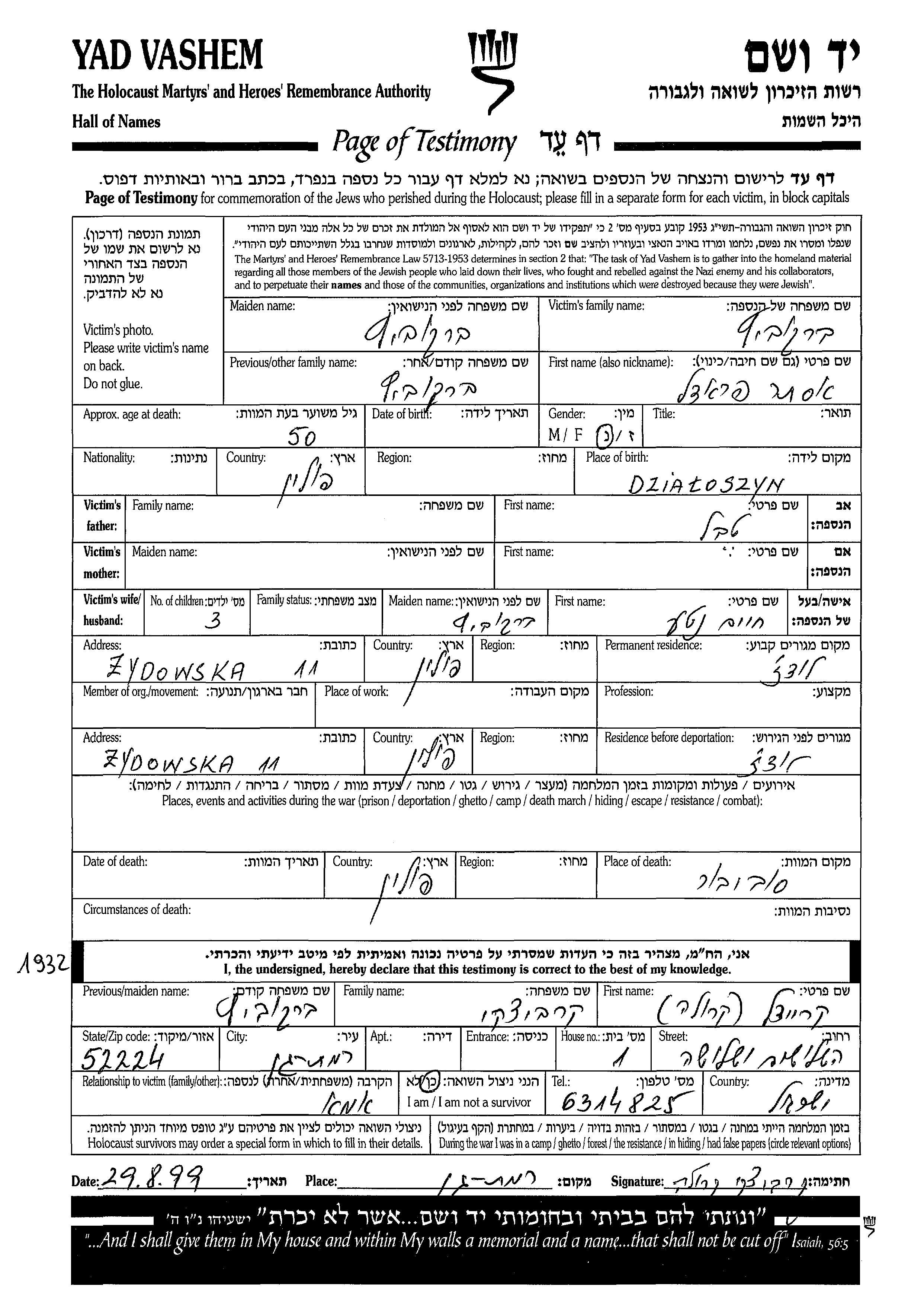 Recherche par date de la mort pendant la période de la Shoah: 1933-1945. Sélectionnez 'Exact'; dans la liste pour rechercher l'année exacte, ou sélectionner '+/- 2 ans'; ou '+/- 5 ans