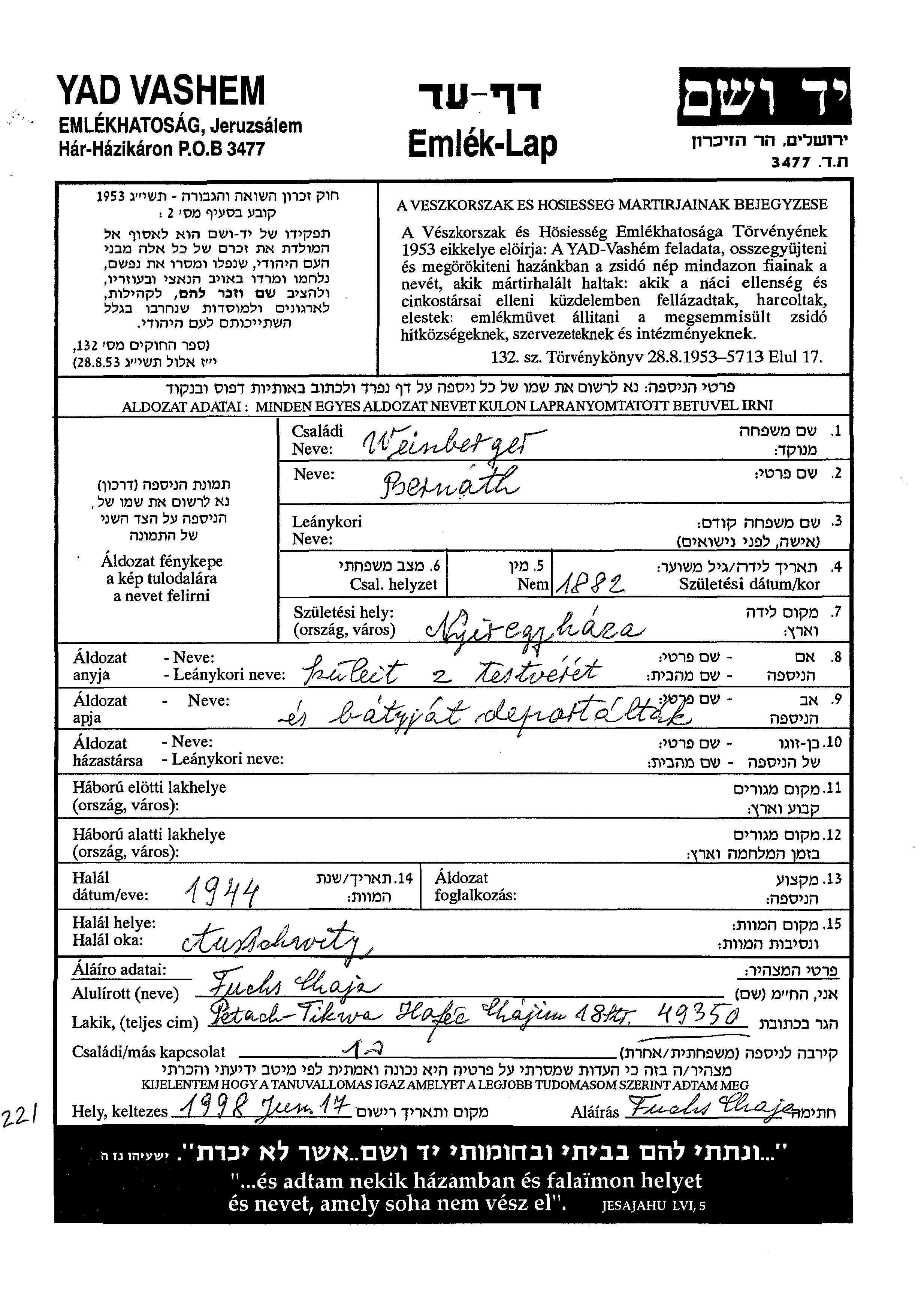 Recherche par date de la mort pendant la période de la Shoah: 1933-1945. Sélectionnez 'Exact'; dans la liste pour rechercher l'année exacte, ou sélectionner '+/- 2 ans'; ou '+/- 5 ans