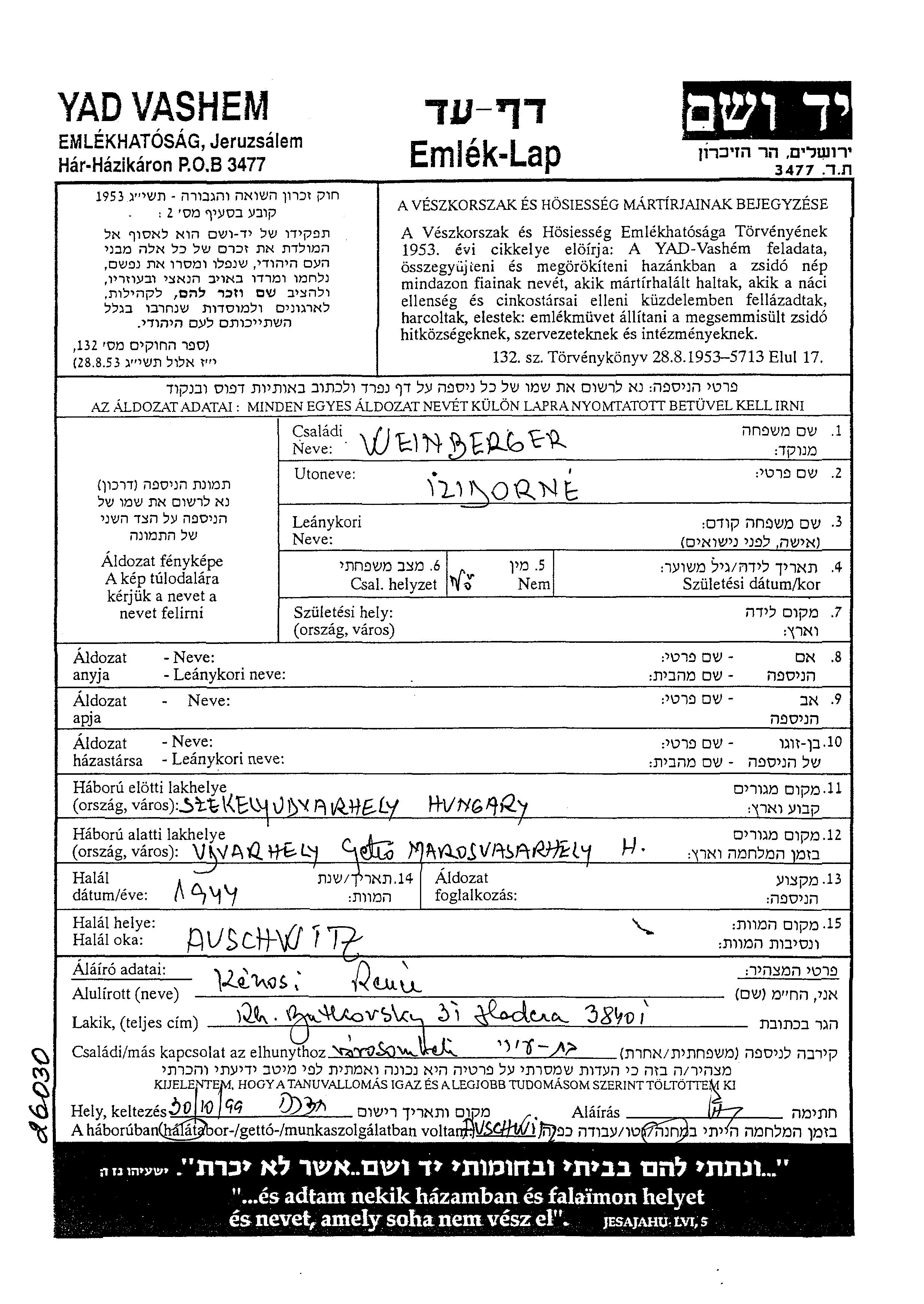 Recherche par lieu de résidence permanente avant la Shoah, ville, village, département, région ou pays.
