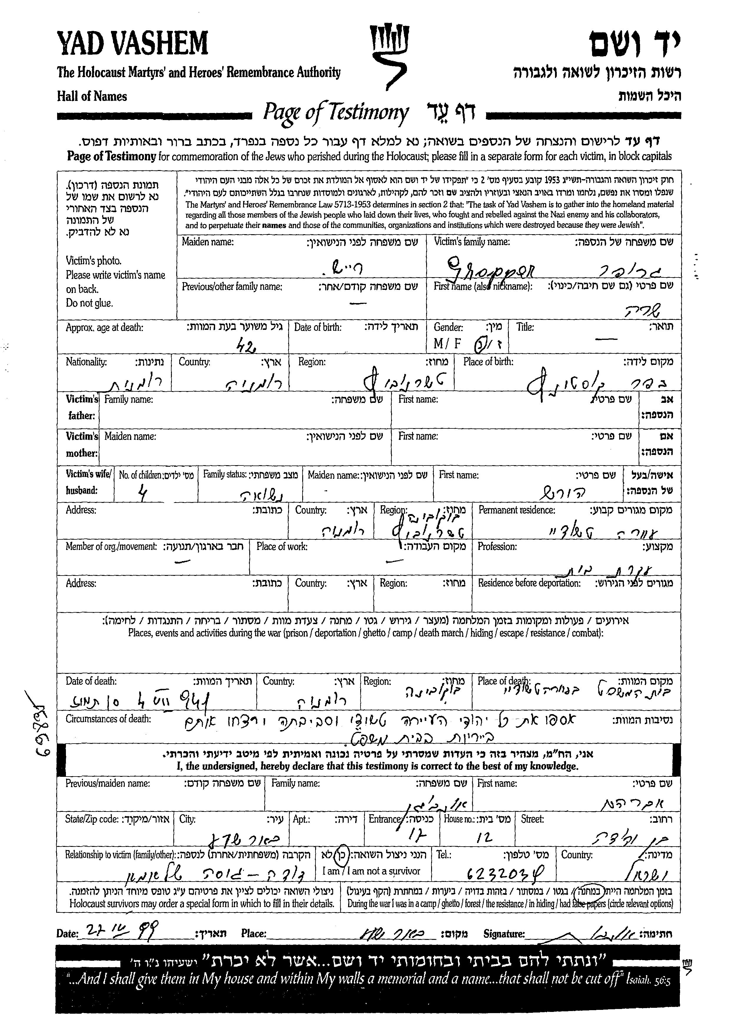 Yad Vashem - Pages of Testimony Names Memorial Collection