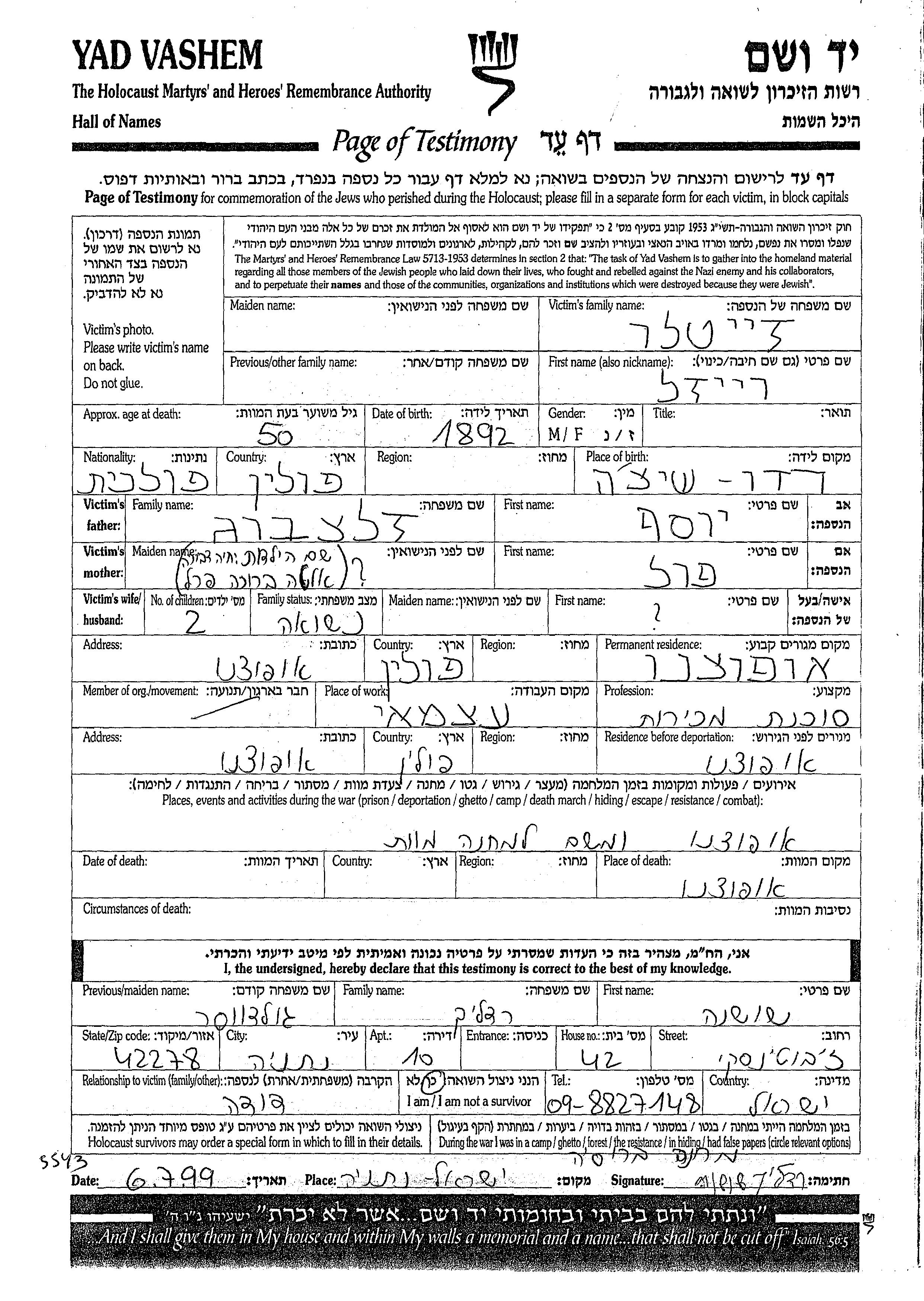 Yad Vashem - Pages of Testimony Names Memorial Collection