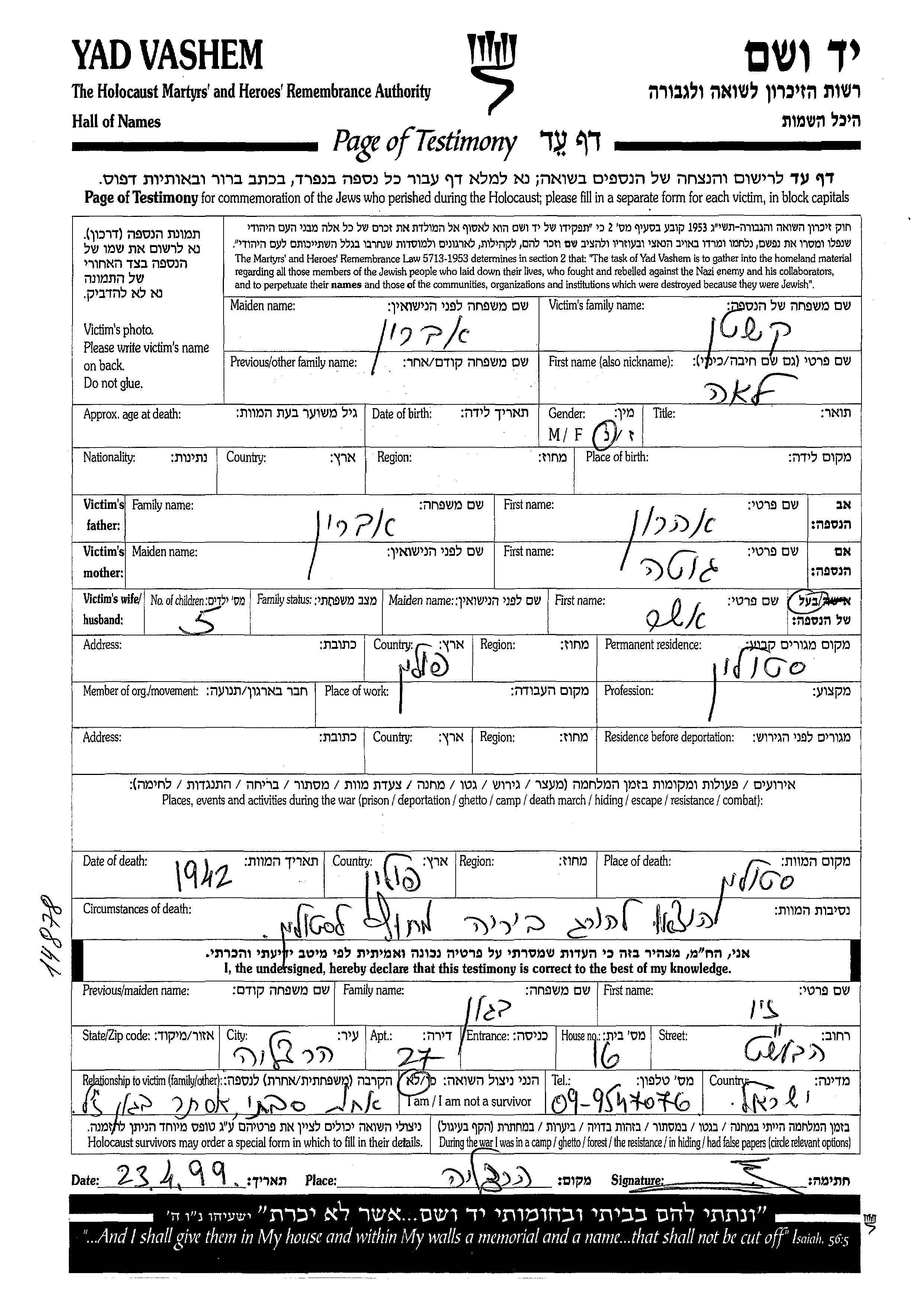 Yad Vashem - Pages of Testimony Names Memorial Collection