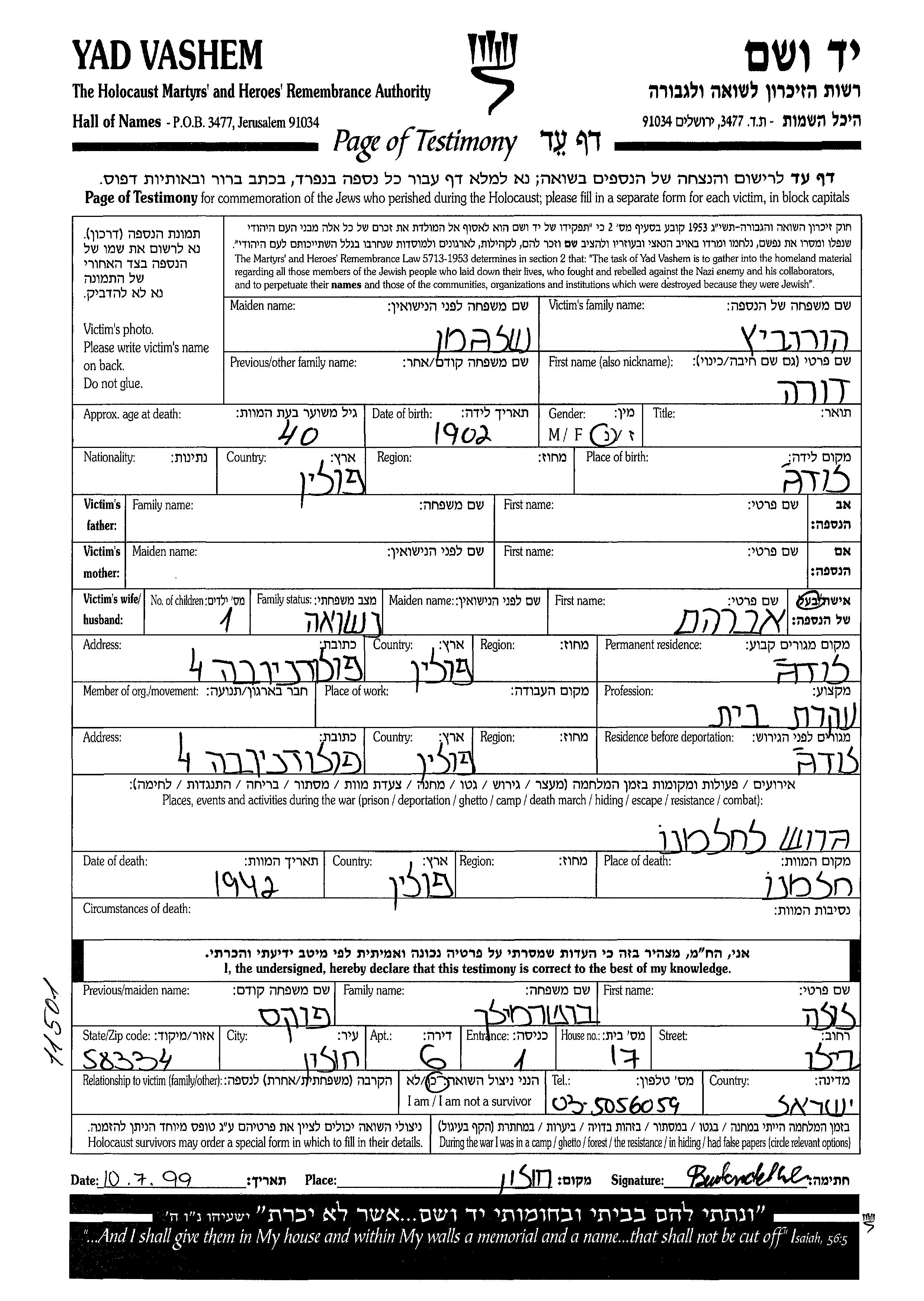 Yad Vashem - Pages of Testimony Names Memorial Collection