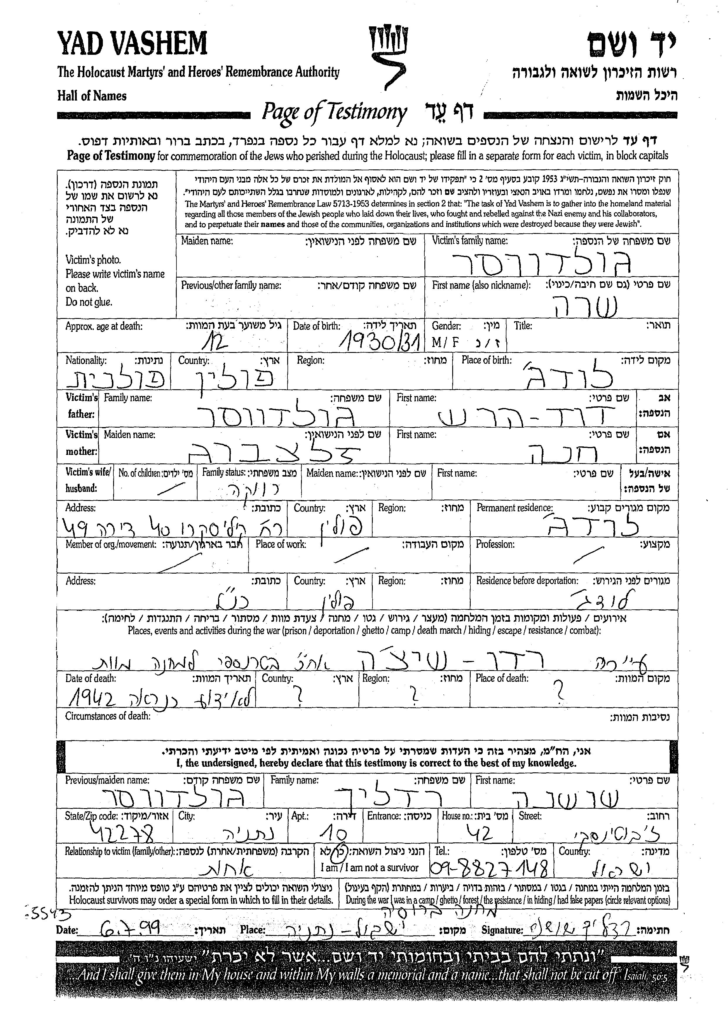 Yad Vashem - Pages of Testimony Names Memorial Collection