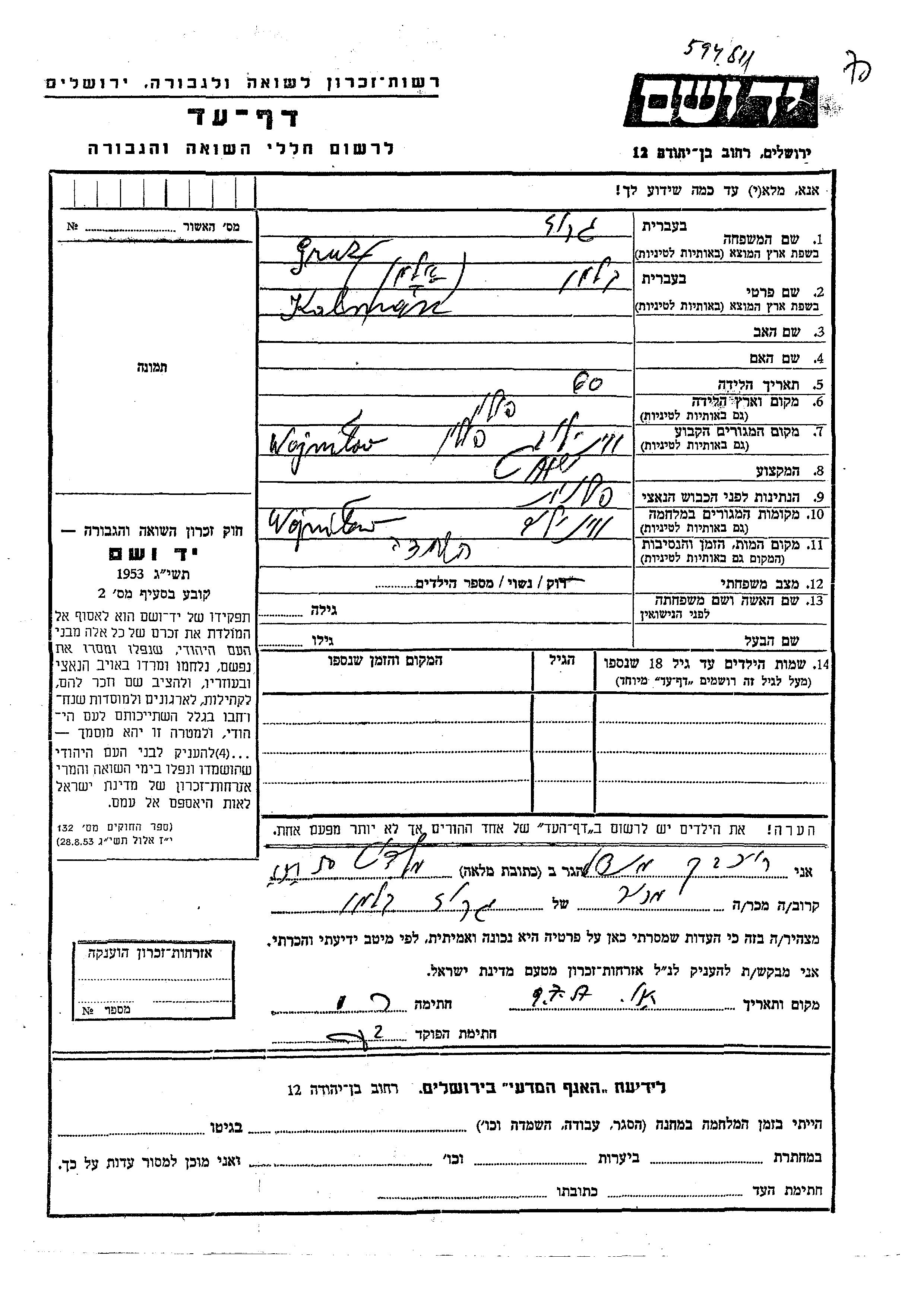 Gruz Kalman Wojnilow, Pologne Feuille de témoignage