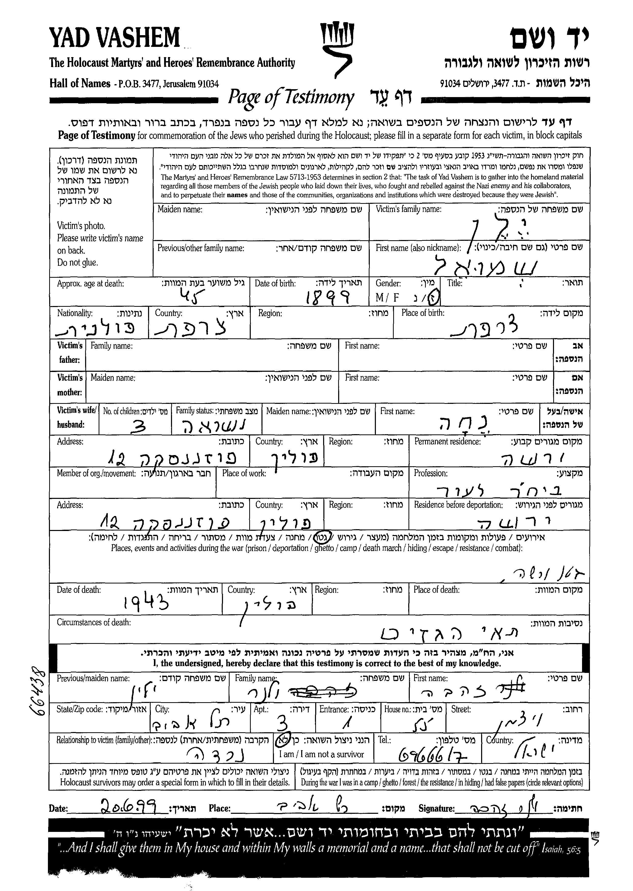 Yad Vashem - Pages of Testimony Names Memorial Collection