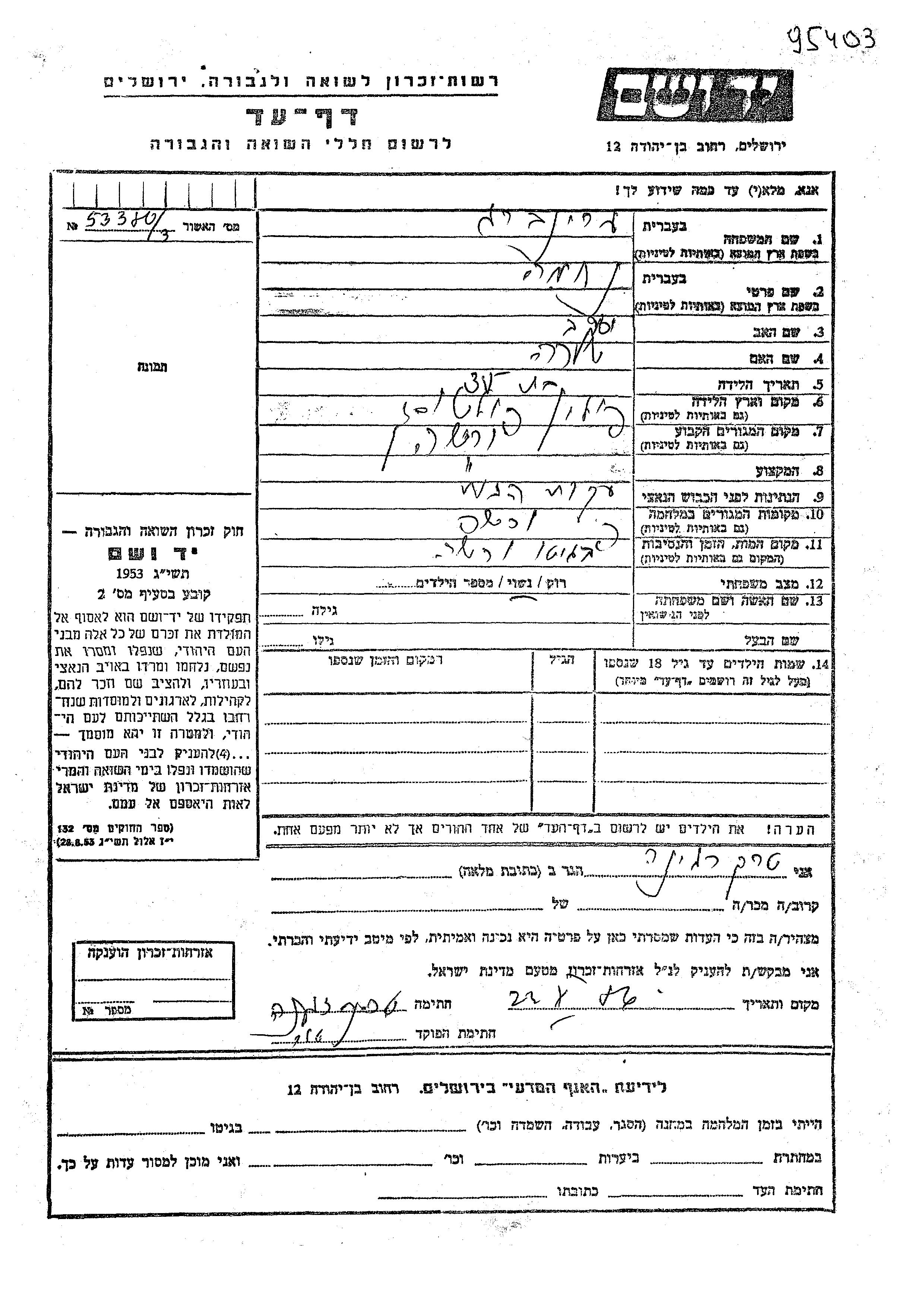 Yad Vashem - Pages of Testimony Names Memorial Collection