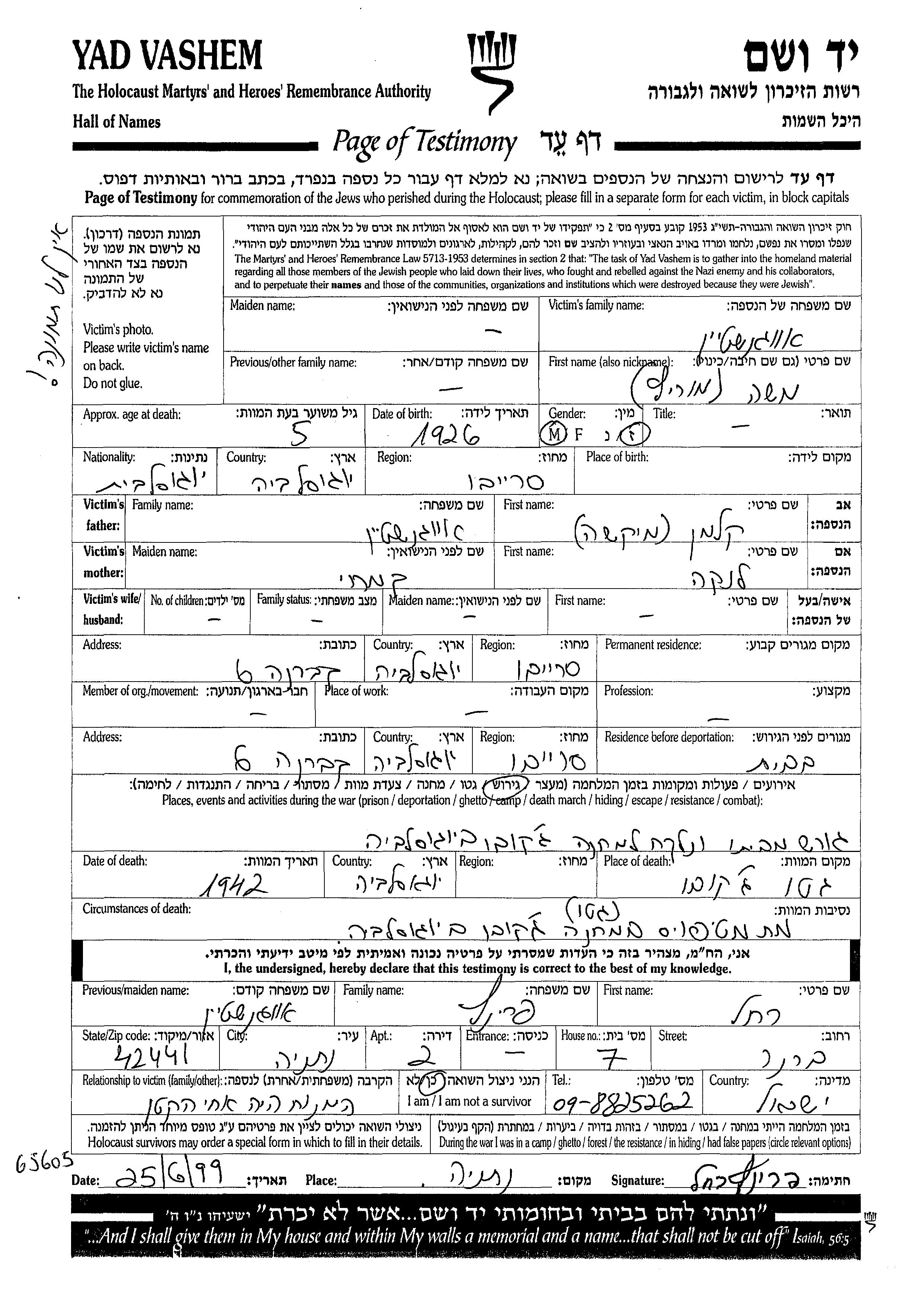 Yad Vashem - Pages of Testimony Names Memorial Collection