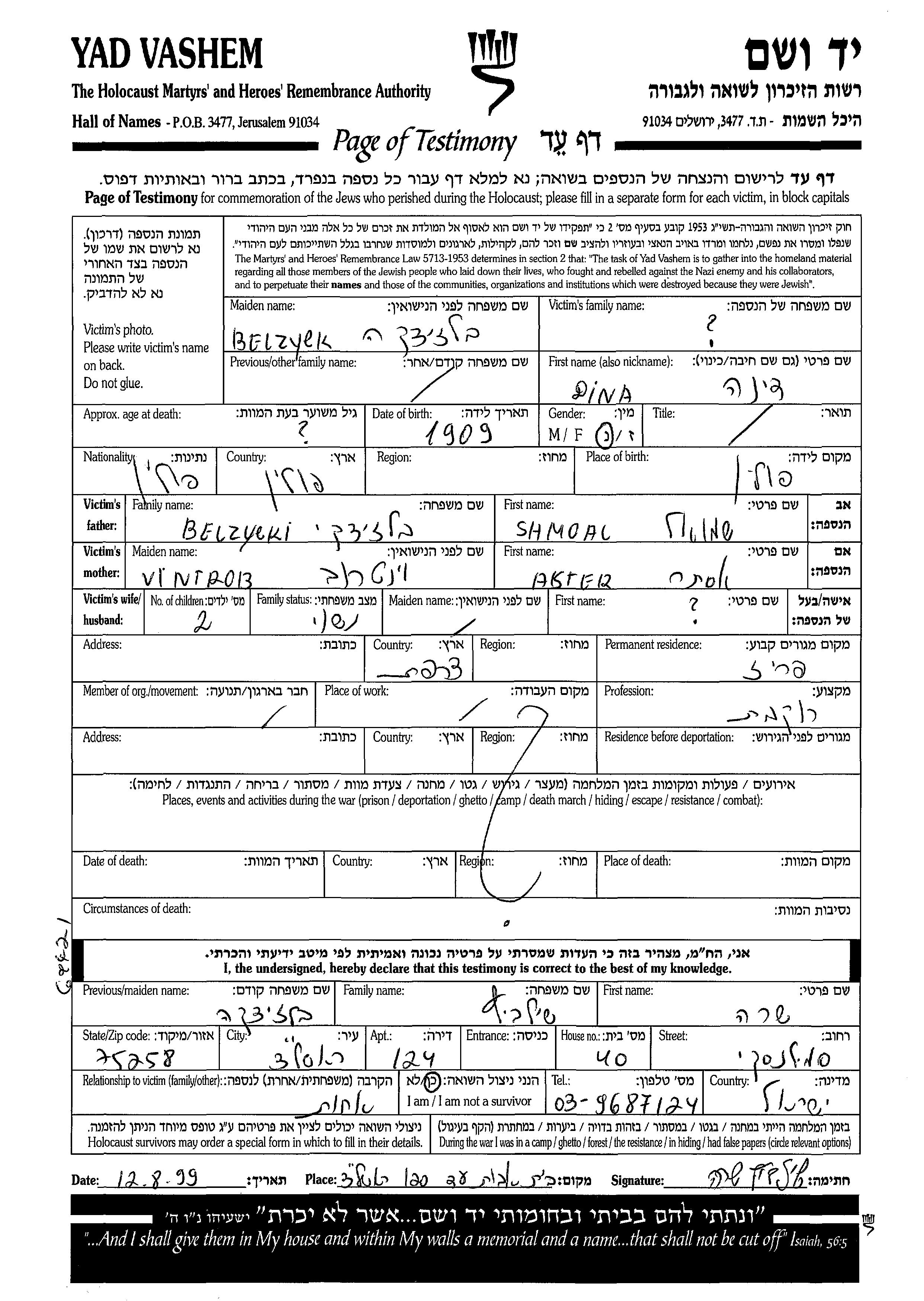 Yad Vashem - Pages of Testimony Names Memorial Collection