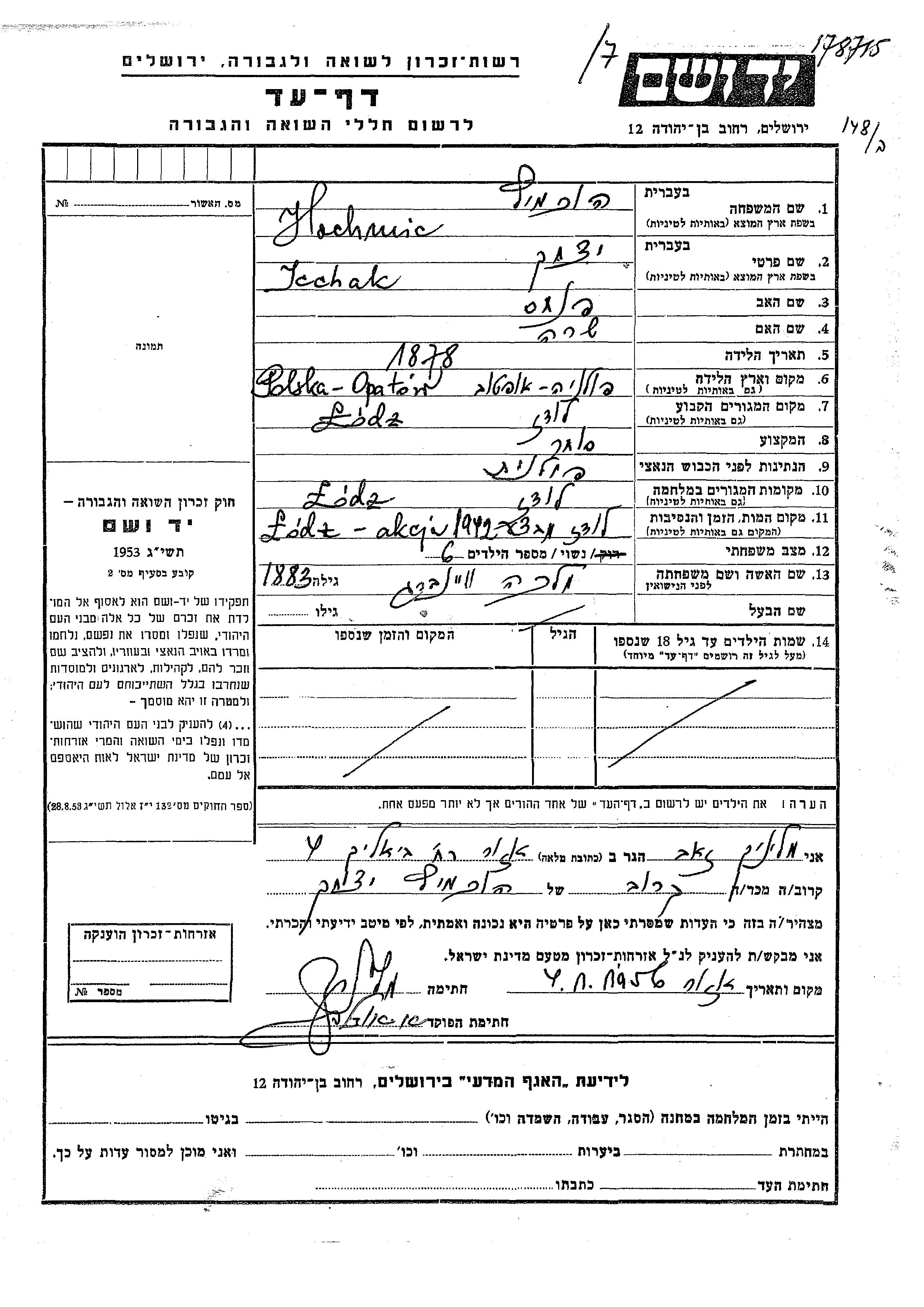 Yad Vashem - Pages of Testimony Names Memorial Collection