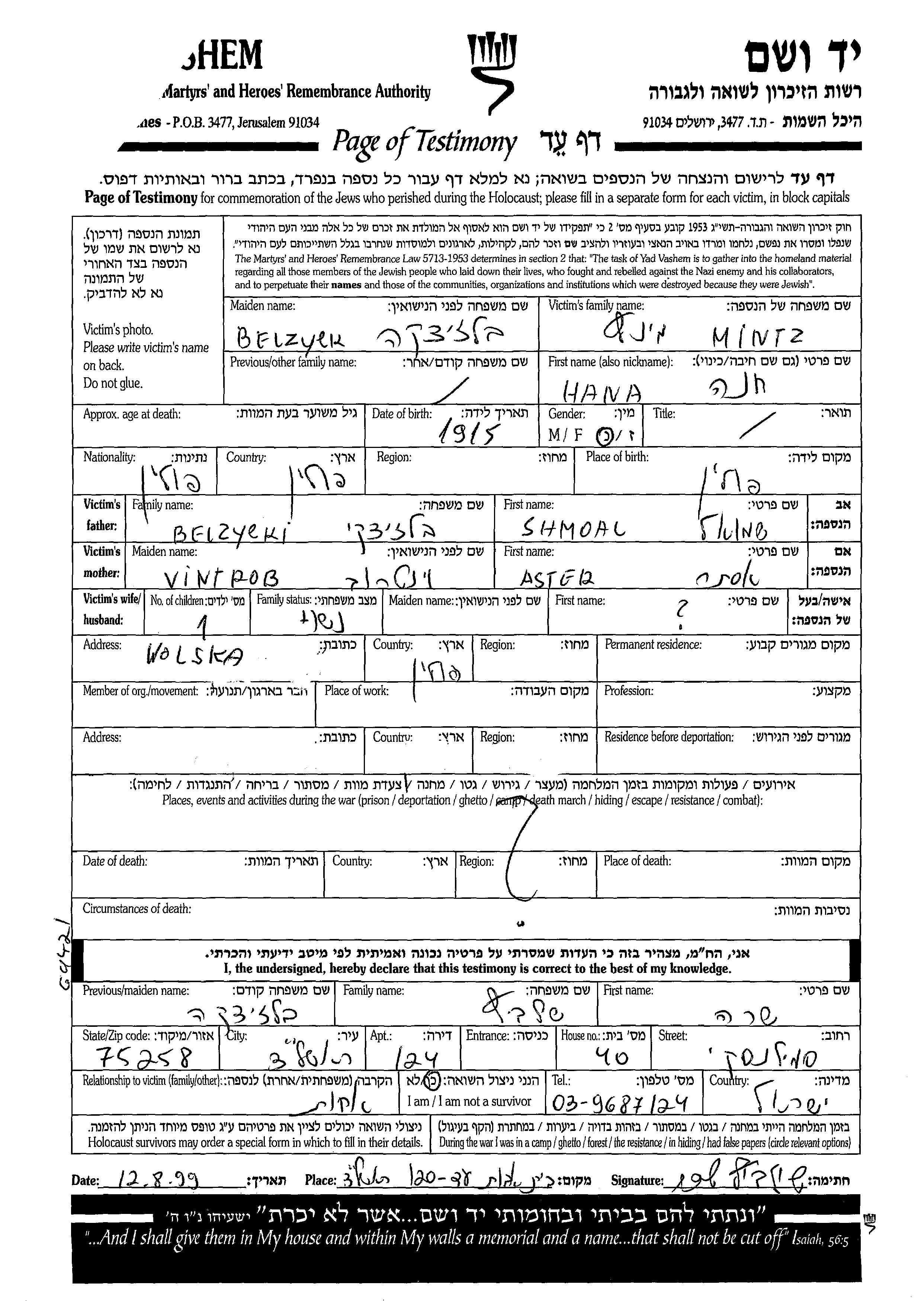 Yad Vashem - Pages of Testimony Names Memorial Collection