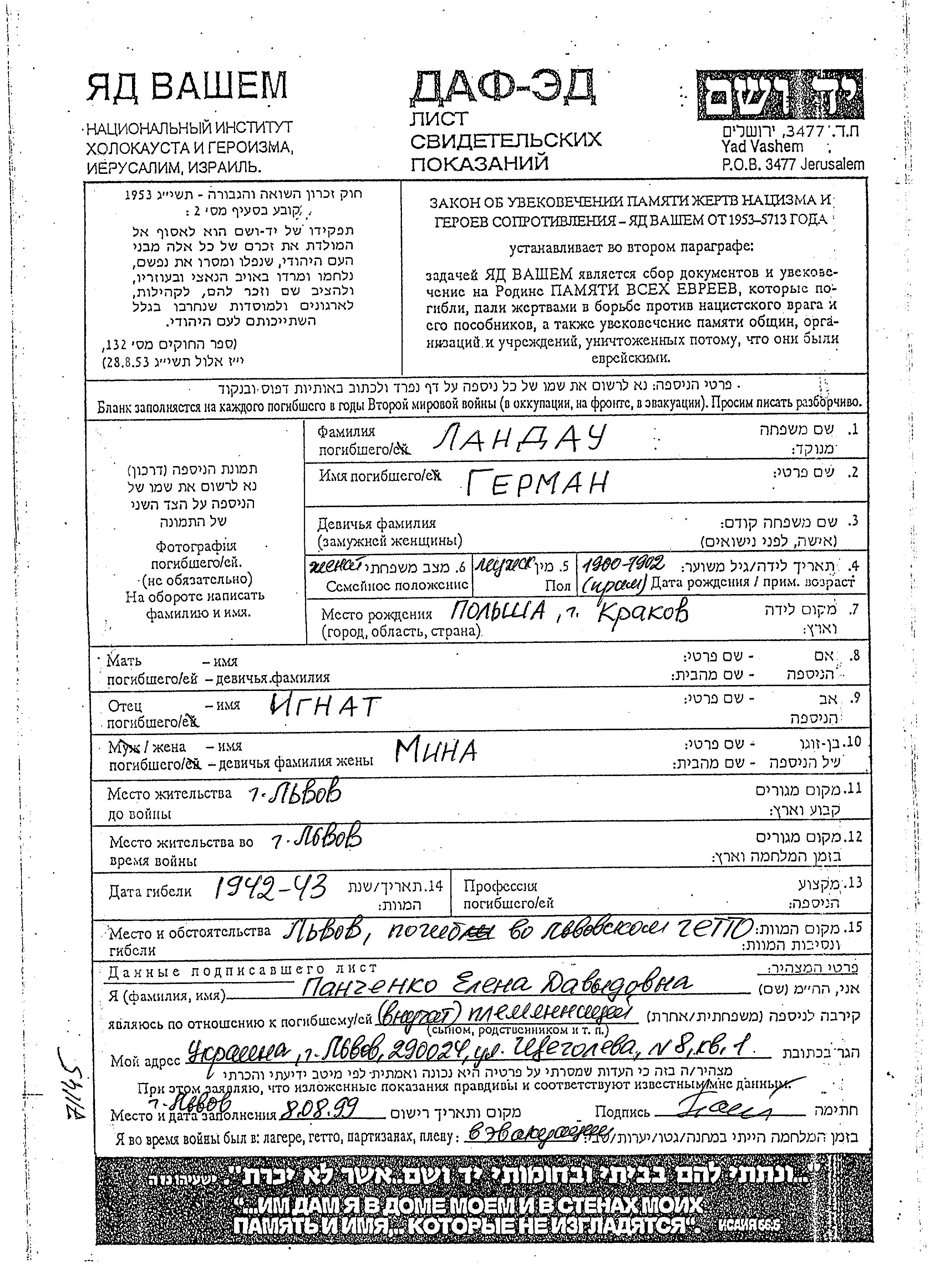 Yad Vashem - Pages of Testimony Names Memorial Collection