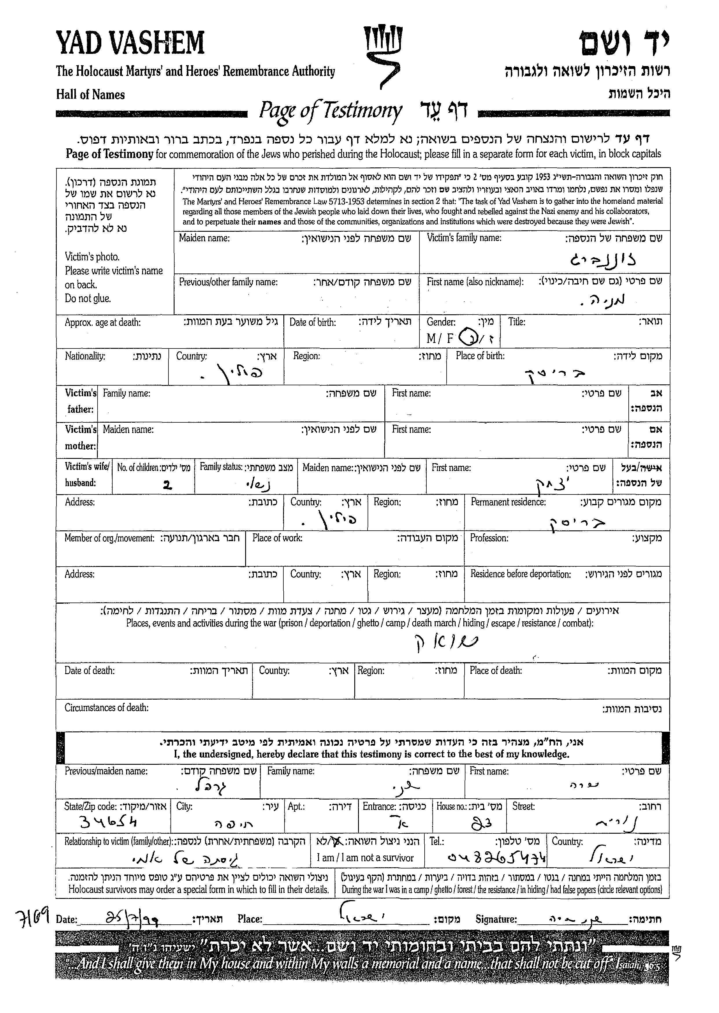 Recherche par lieu de résidence permanente avant la Shoah, ville, village, département, région ou pays.