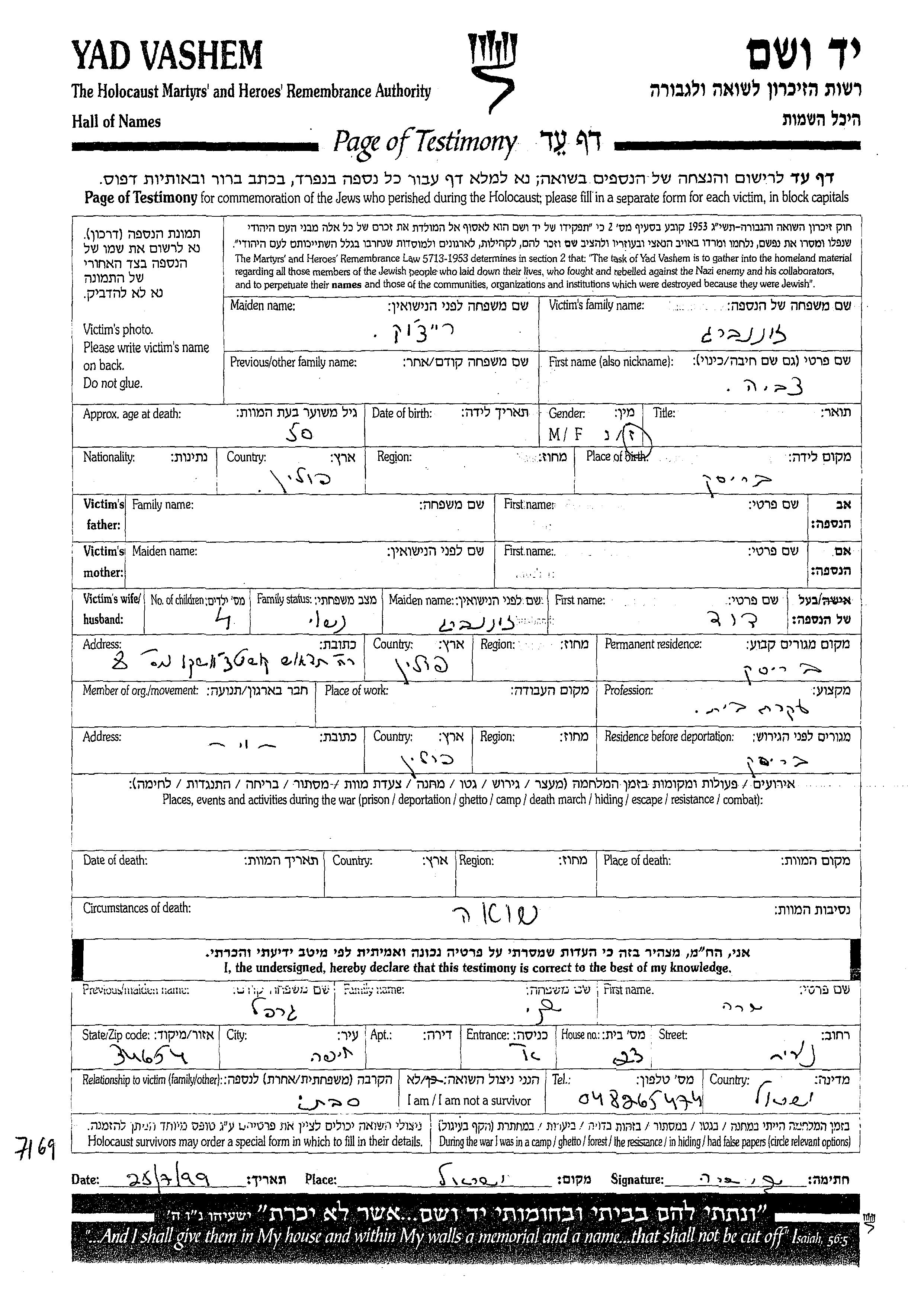 Yad Vashem - Pages of Testimony Names Memorial Collection