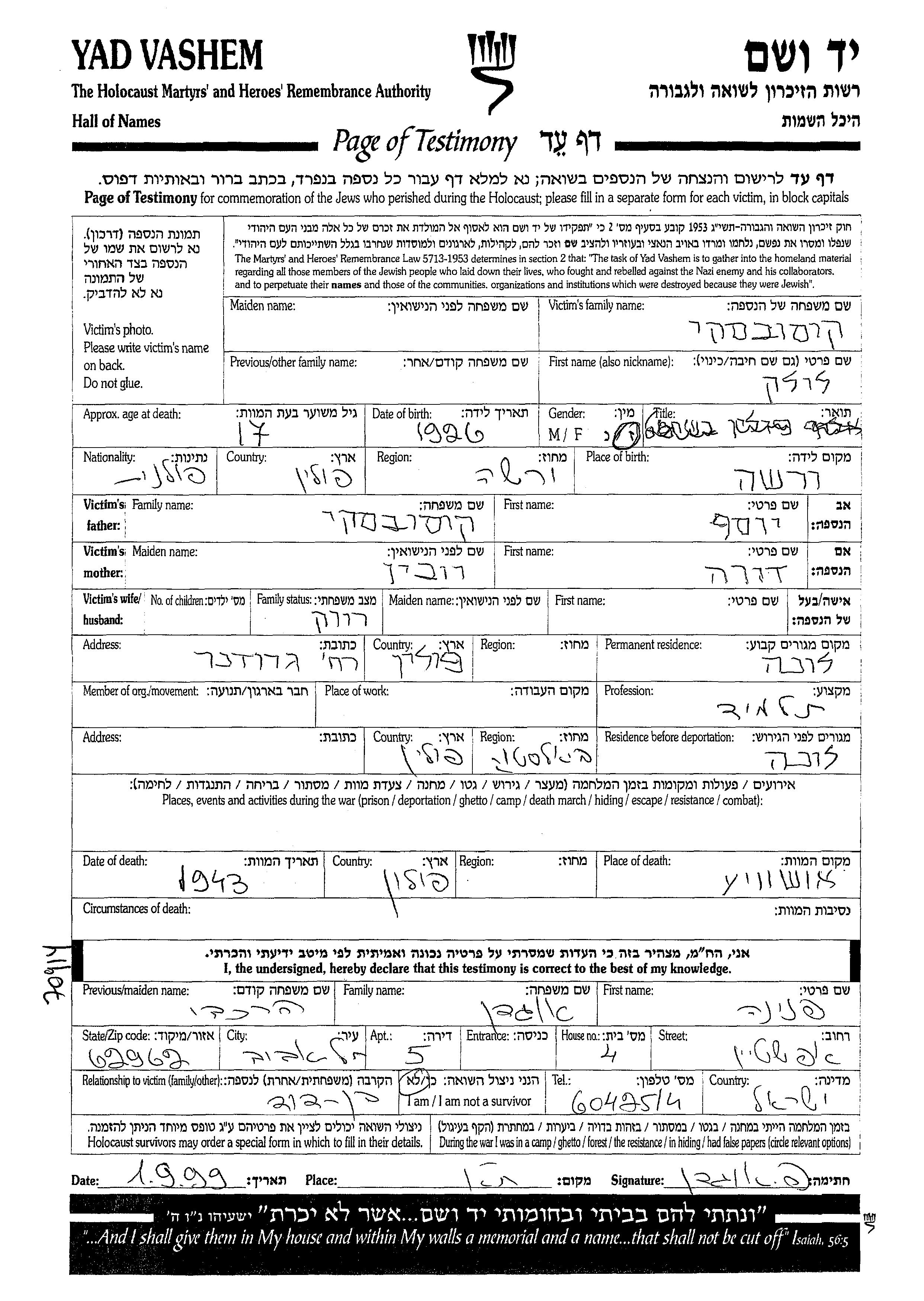 Yad Vashem - Pages of Testimony Names Memorial Collection
