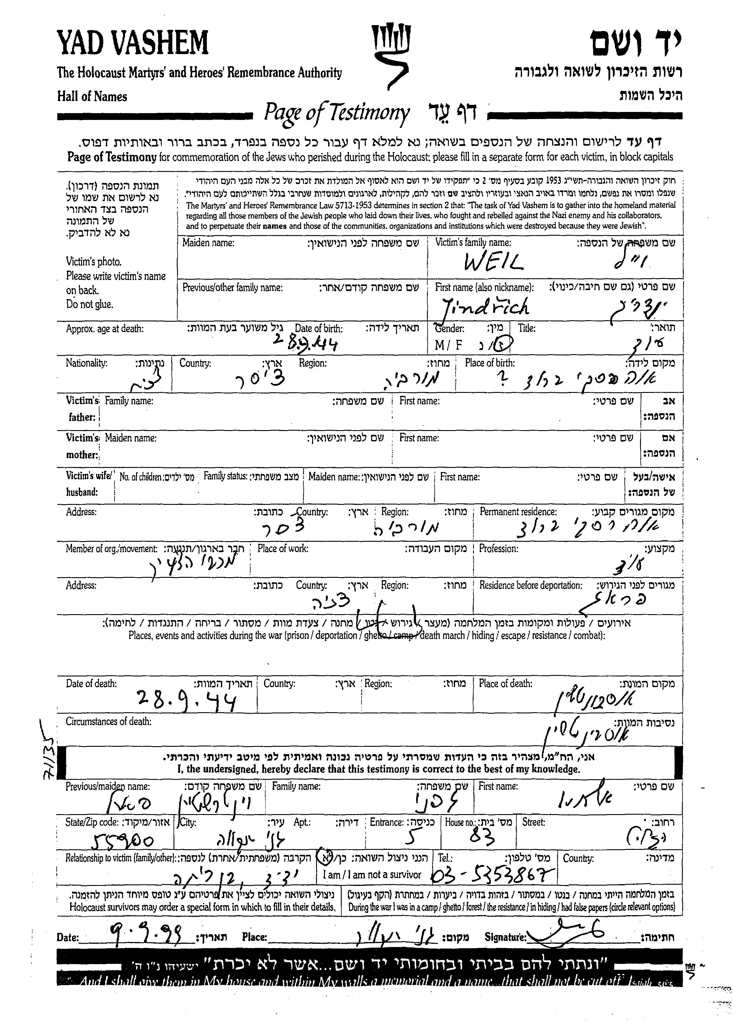 Yad Vashem - Pages of Testimony Names Memorial Collection