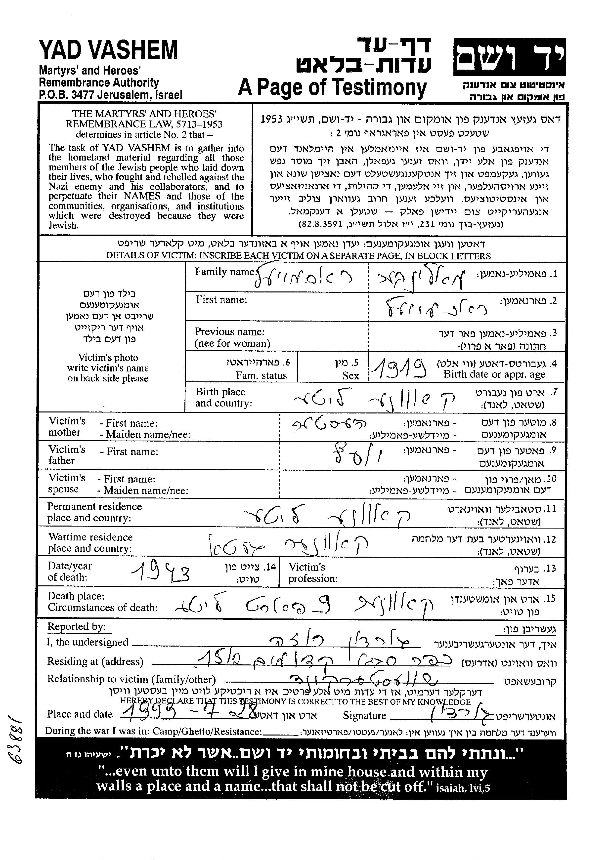 Yad Vashem - Pages of Testimony Names Memorial Collection