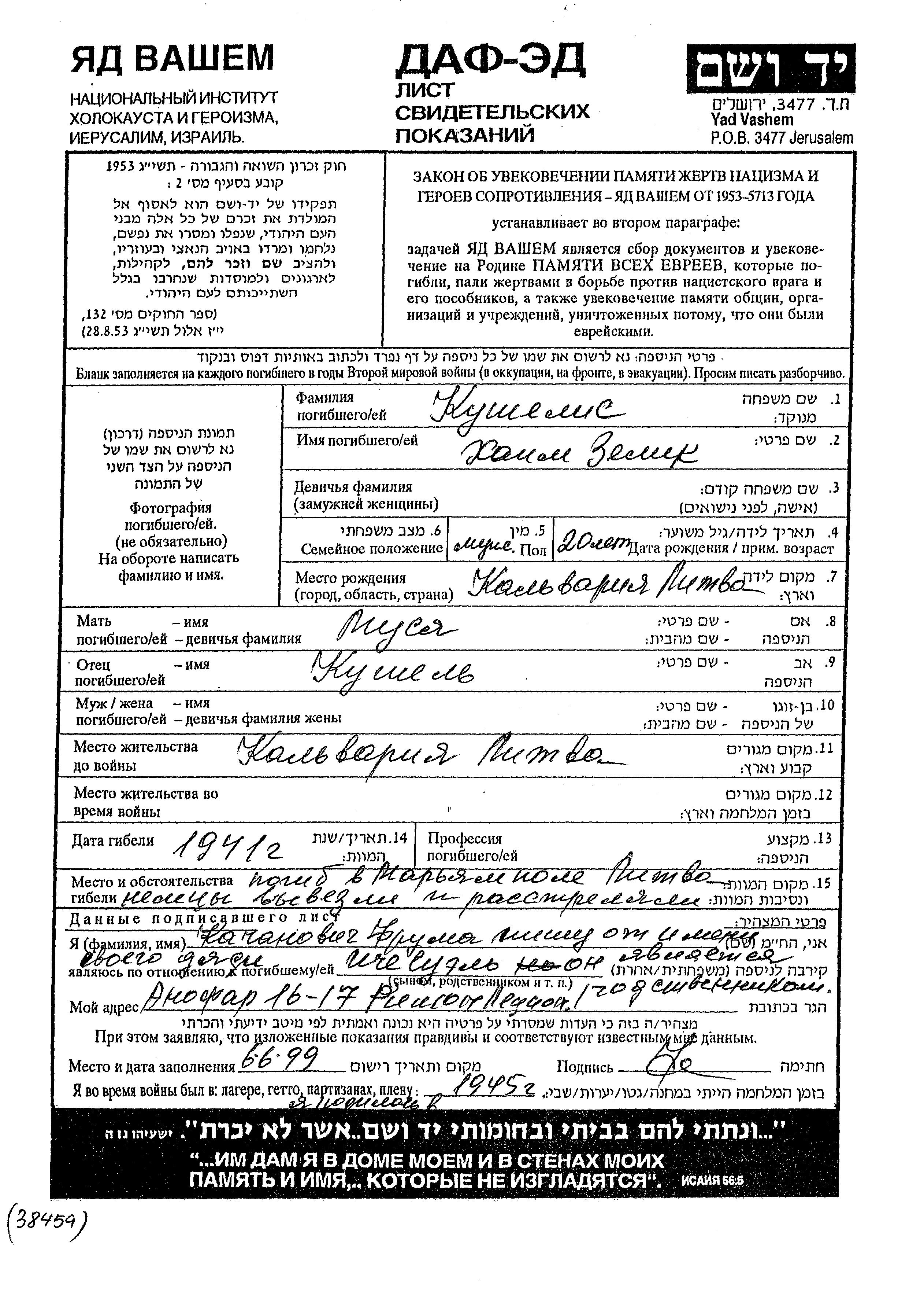Yad Vashem - Pages of Testimony Names Memorial Collection