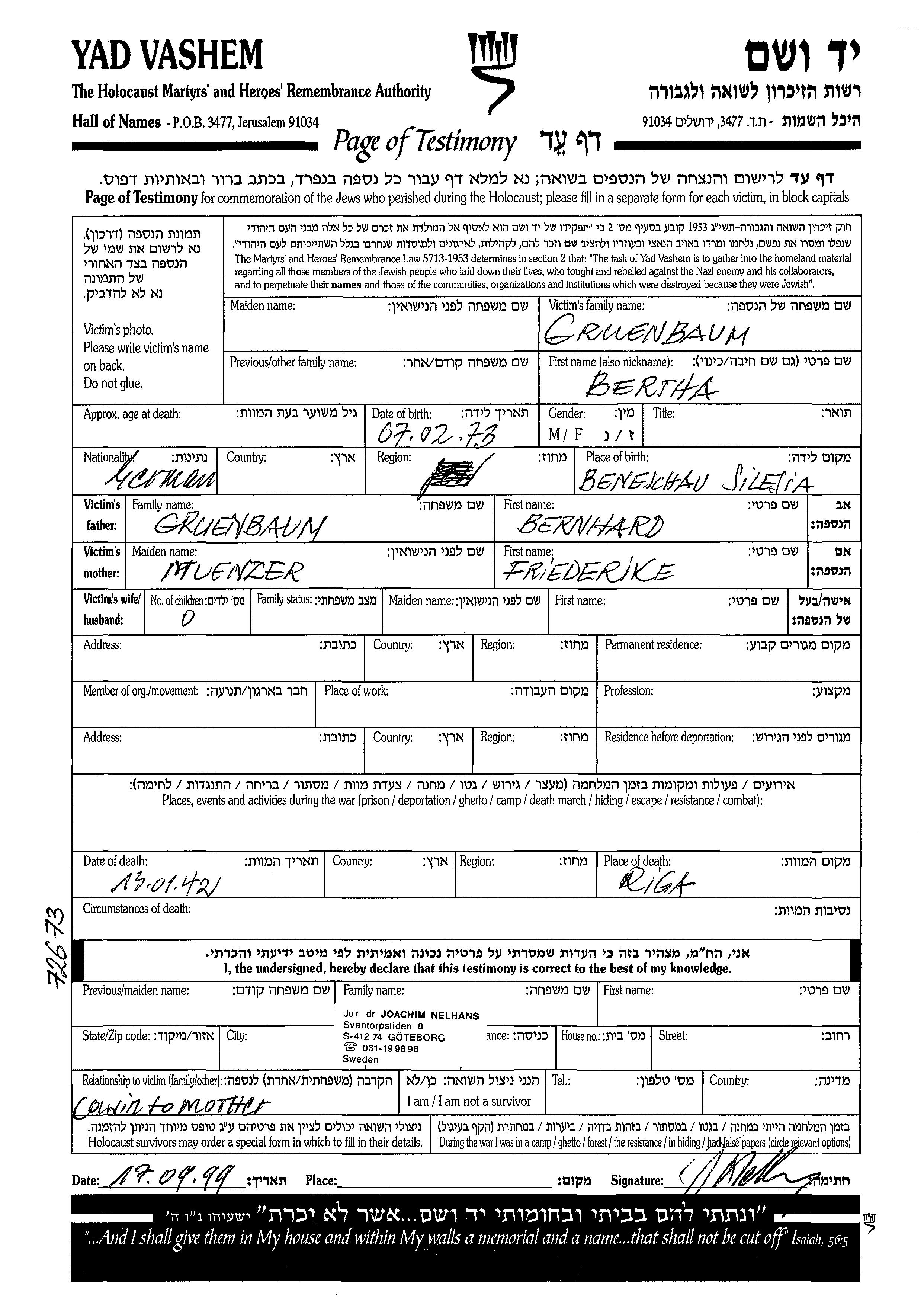 Yad Vashem - Pages of Testimony Names Memorial Collection