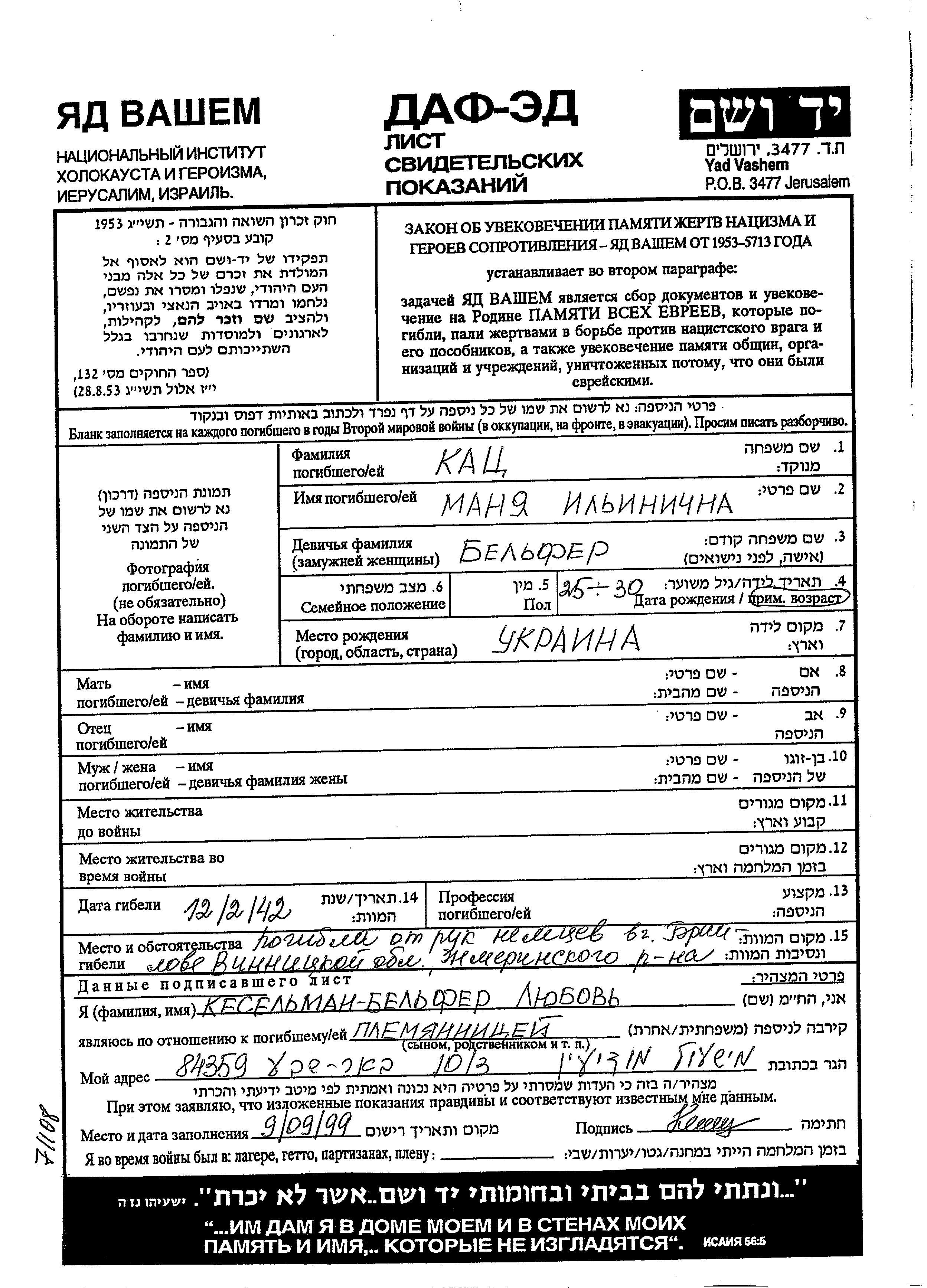 Yad Vashem - Pages of Testimony Names Memorial Collection