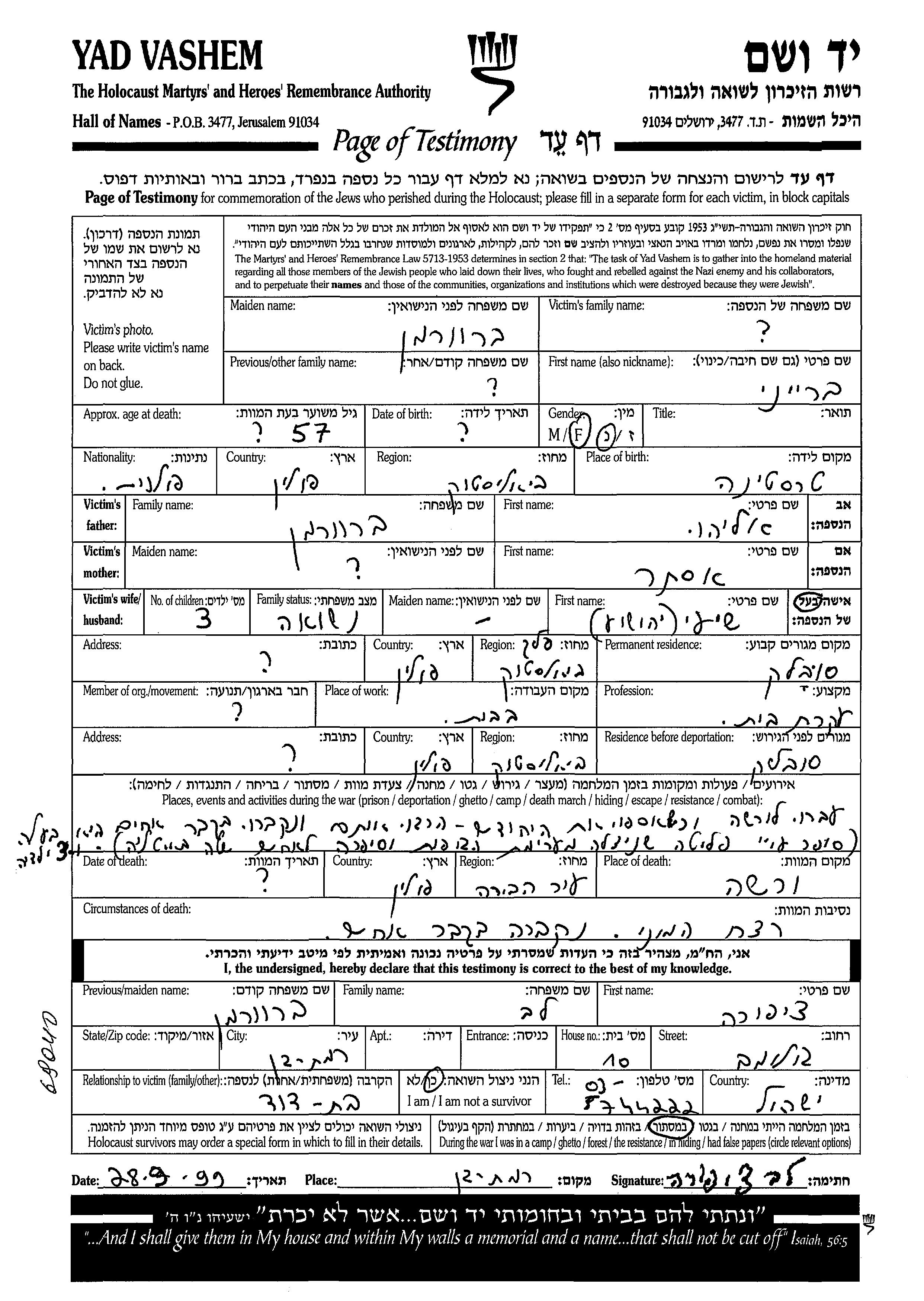 Yad Vashem - Pages of Testimony Names Memorial Collection