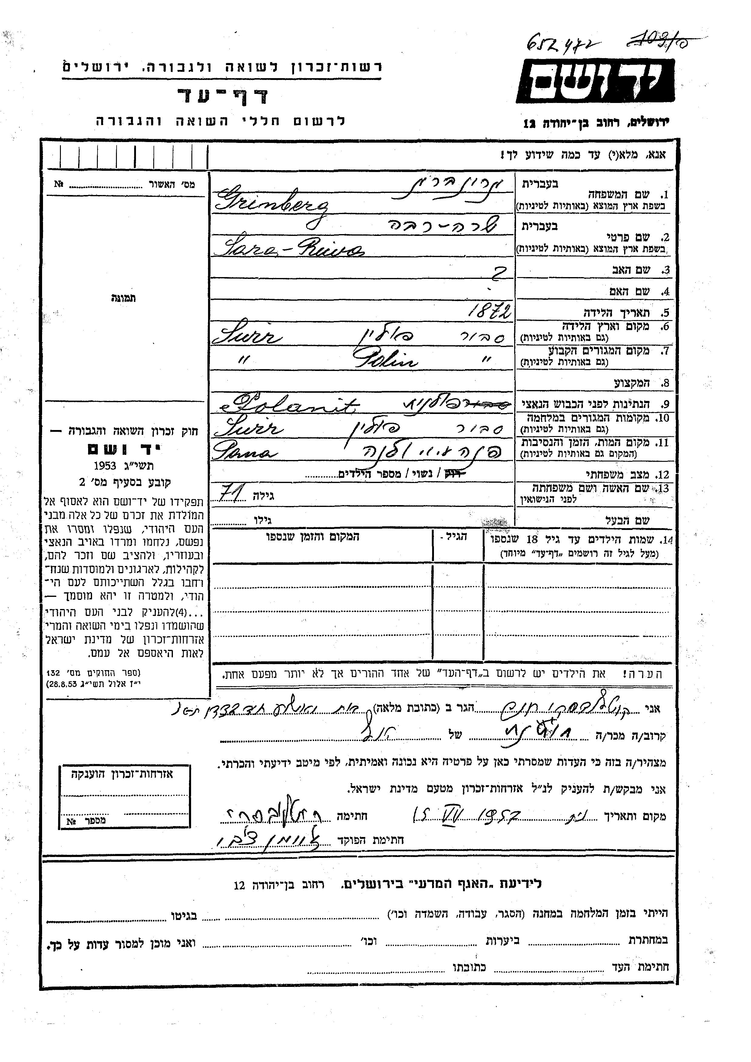 Yad Vashem - Pages of Testimony Names Memorial Collection