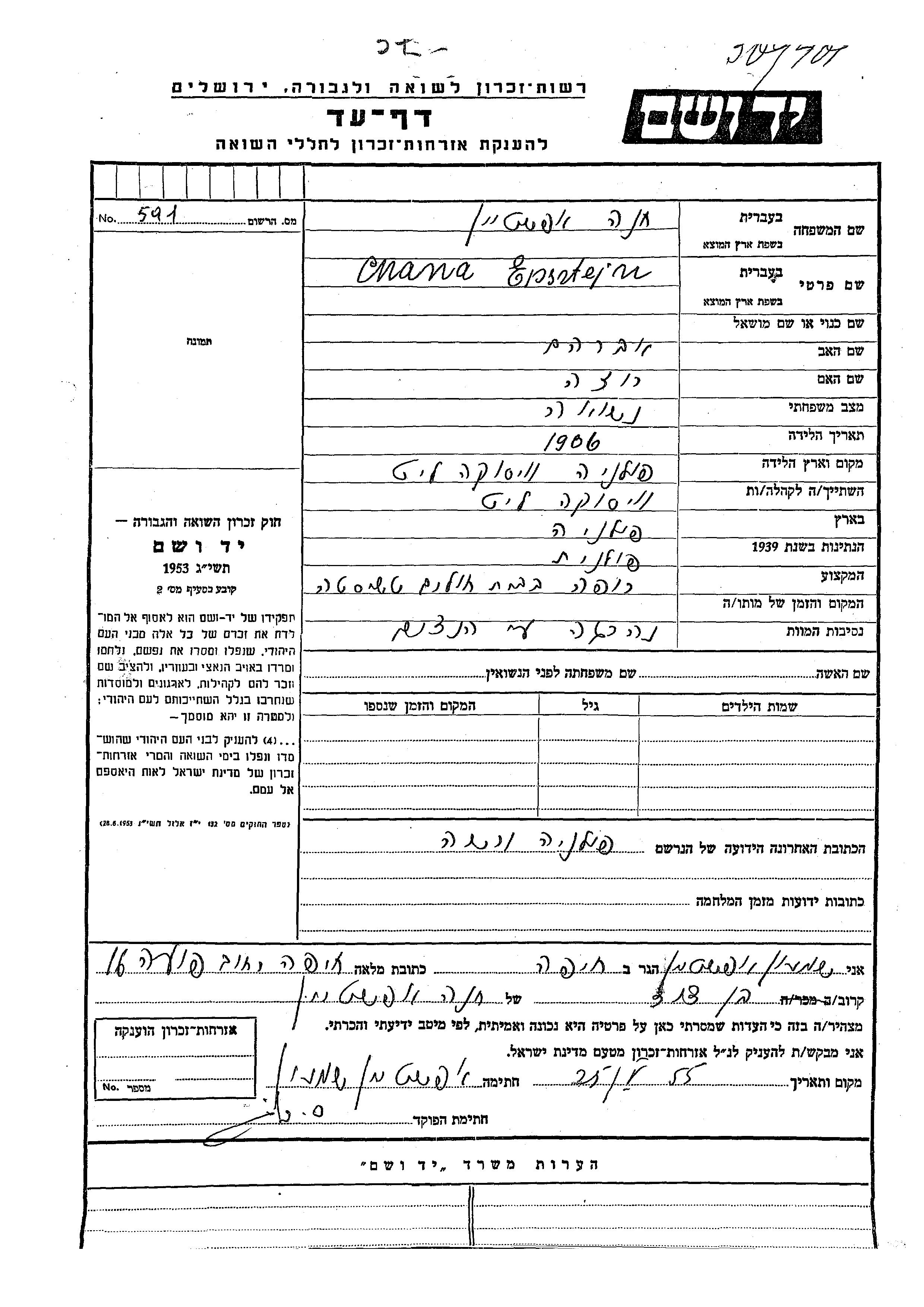 Yad Vashem - Pages of Testimony Names Memorial Collection